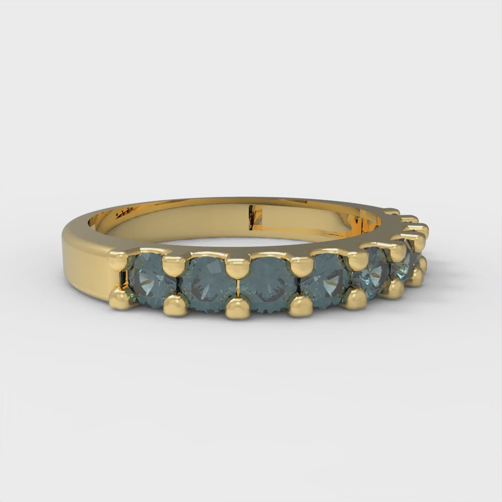 0.63 cttw Natural London Blue Topaz Round Cut Yellow Gold Eternity Wedding Band