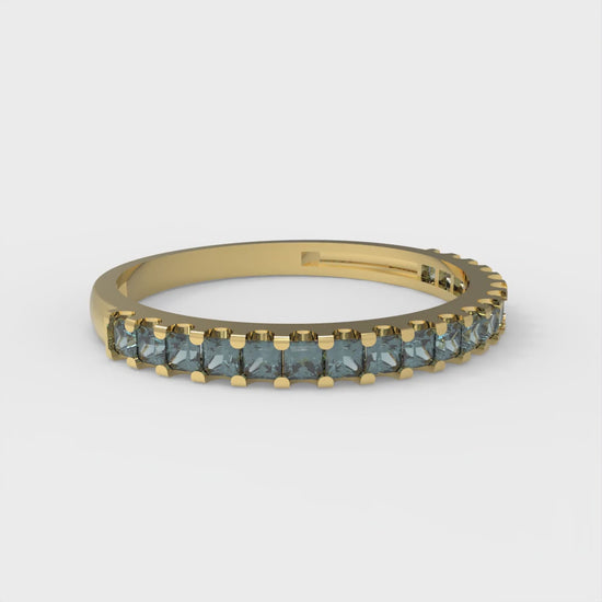 0.285 cttw Natural London Blue Topaz Princess Cut Yellow Gold Eternity Wedding Band