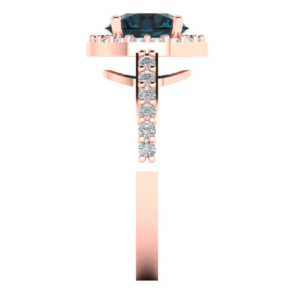 1.86 cttw Natural London Blue Topaz Hidden Halo Engagement Ring - Solid Gold (Round Cut,7.5mm)