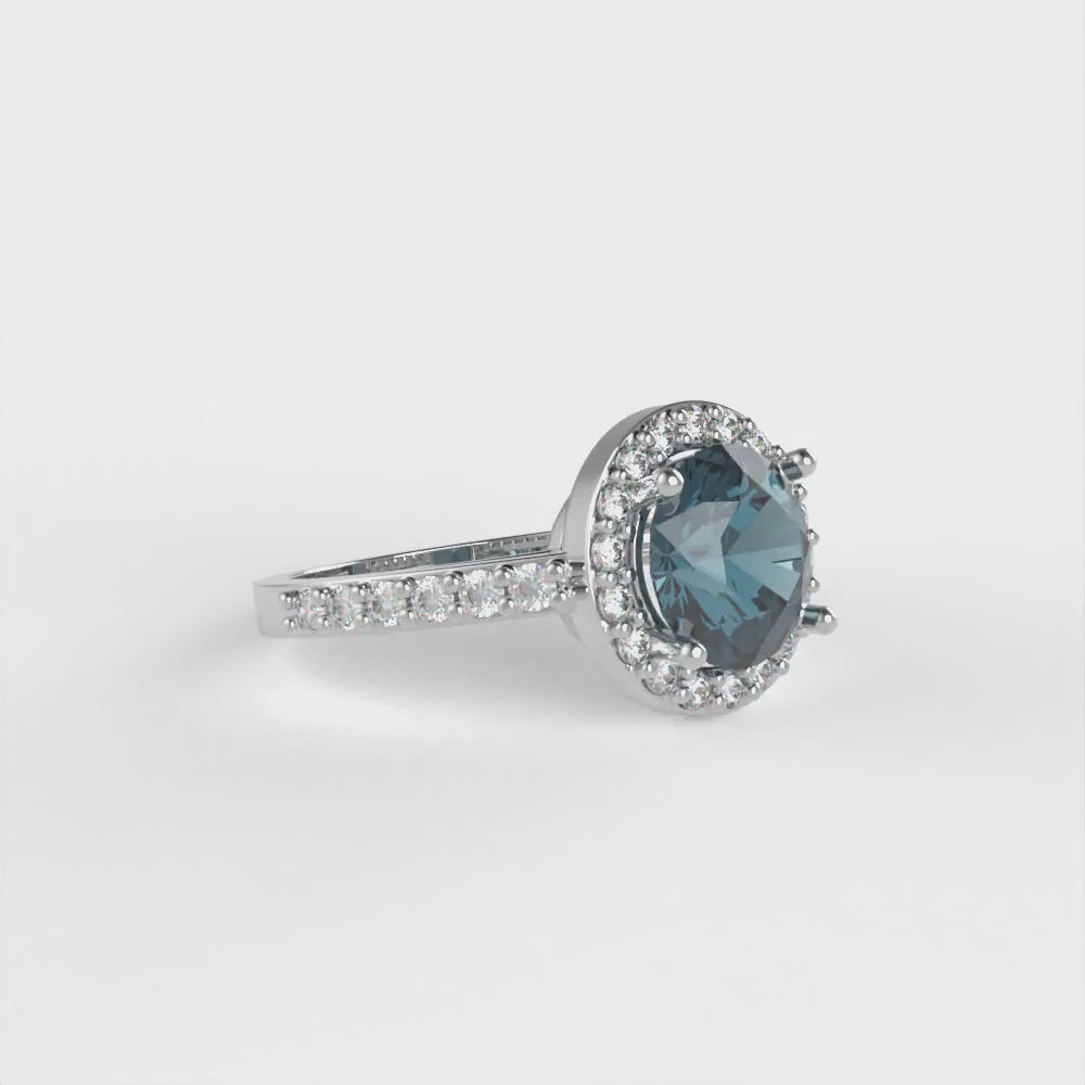 1.86 cttw Natural London Blue Topaz Hidden Halo Engagement Ring - Solid Gold (Round Cut,7.5mm)