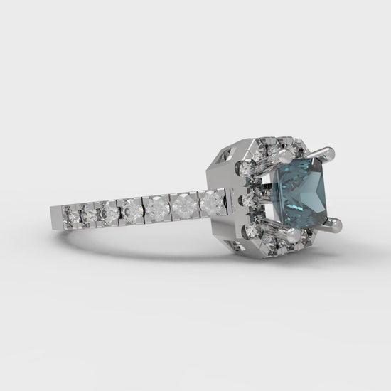 0.89 cttw Natural London Blue Topaz Hidden Halo Engagement Ring - Solid Gold (Princess Cut,4.5mm)