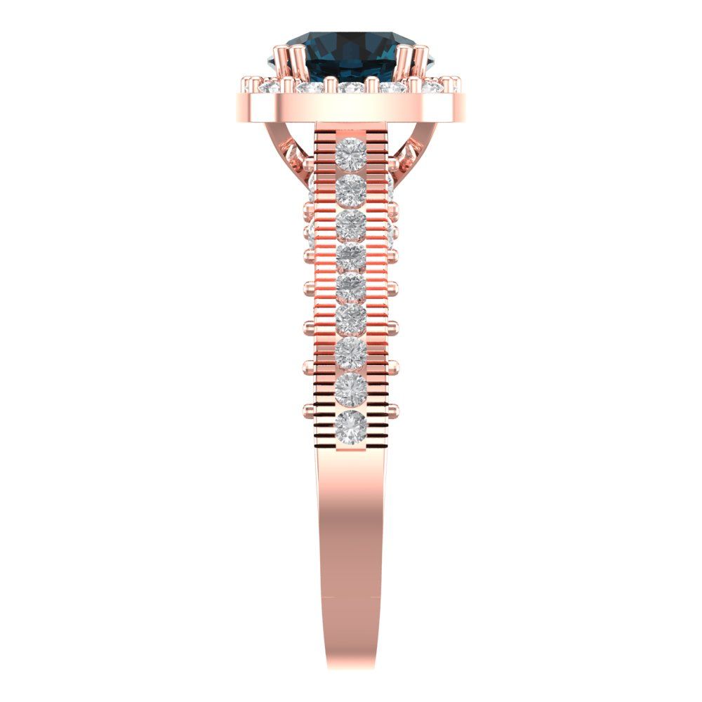2.37 cttw Natural London Blue Topaz Hidden Halo Engagement Ring - Solid Gold (Round Cut,7.5mm)
