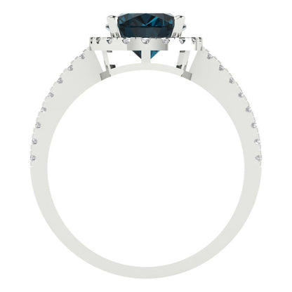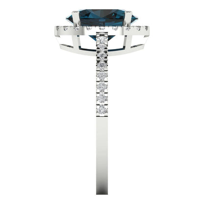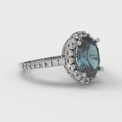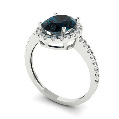 2.27 cttw Natural London Blue Topaz Hidden Halo Engagement Ring - Solid Gold (Oval Cut,9X7mm)