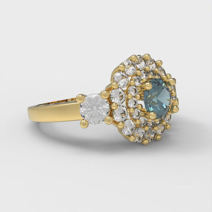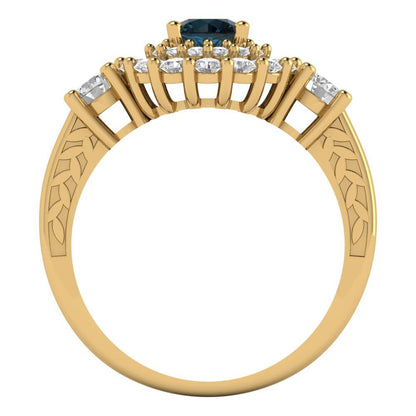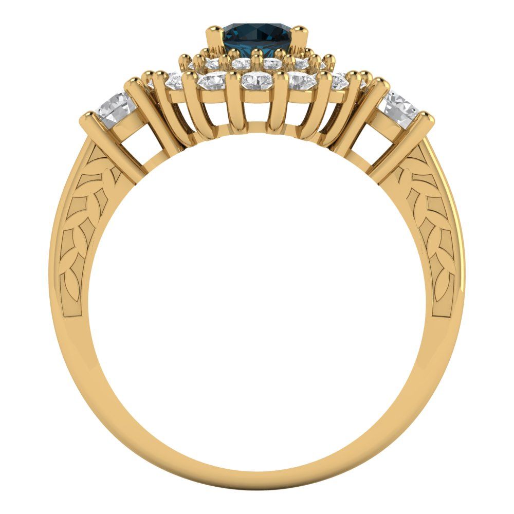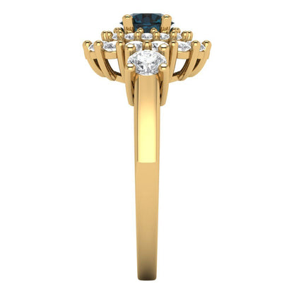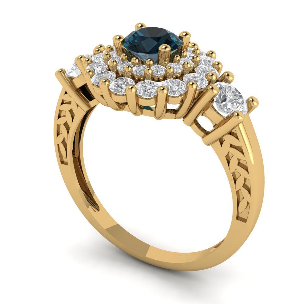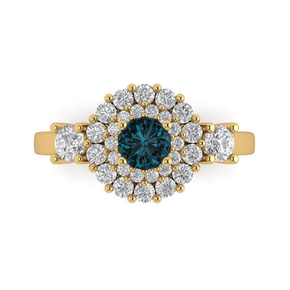1.4 cttw Natural London Blue Topaz Hidden Halo Engagement Ring - Solid Gold (Round Cut,5.0mm)