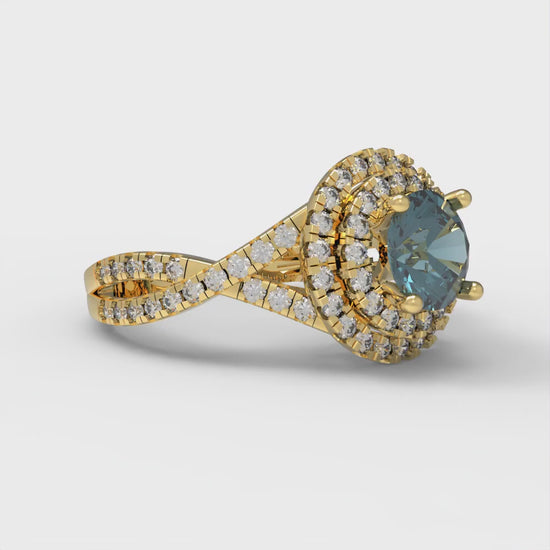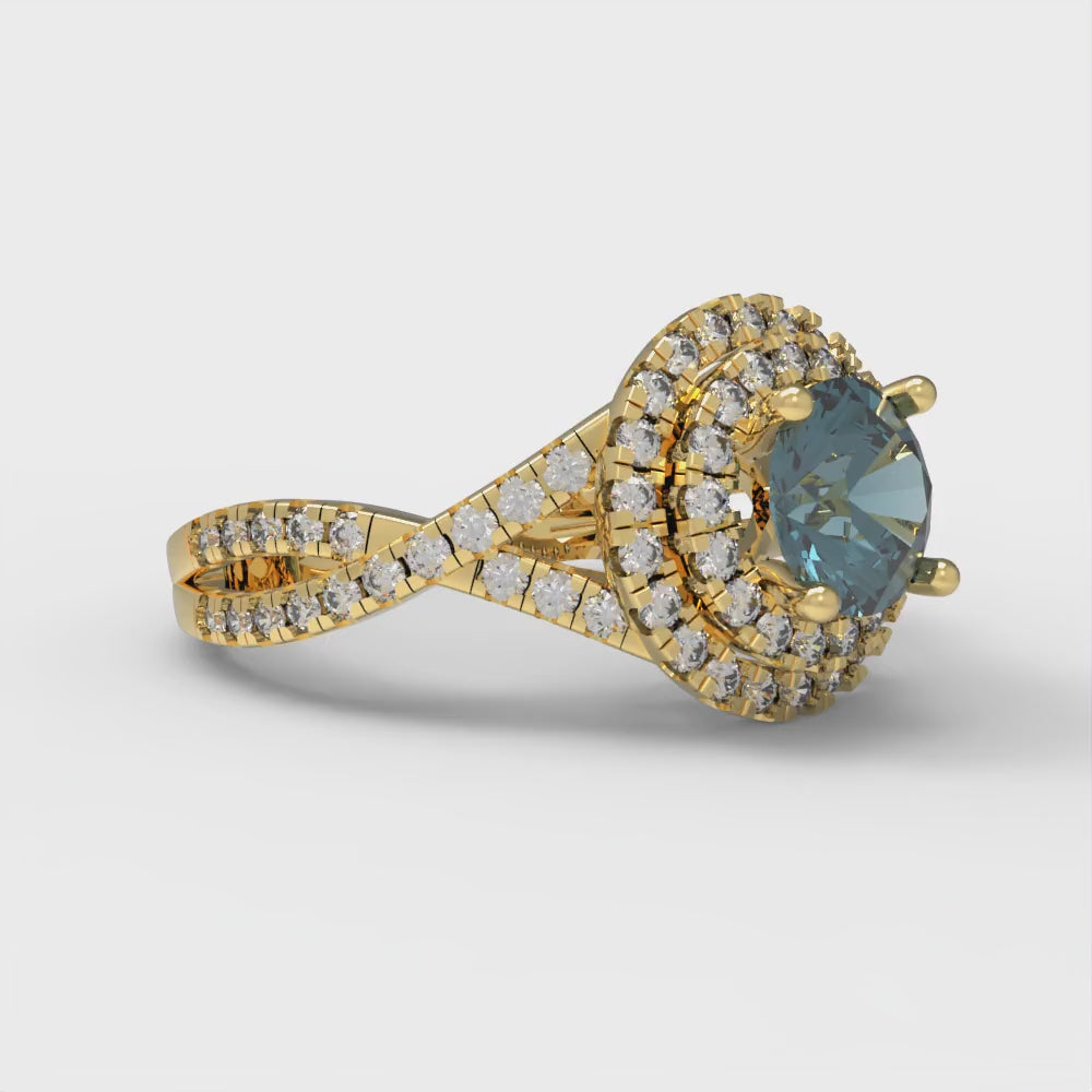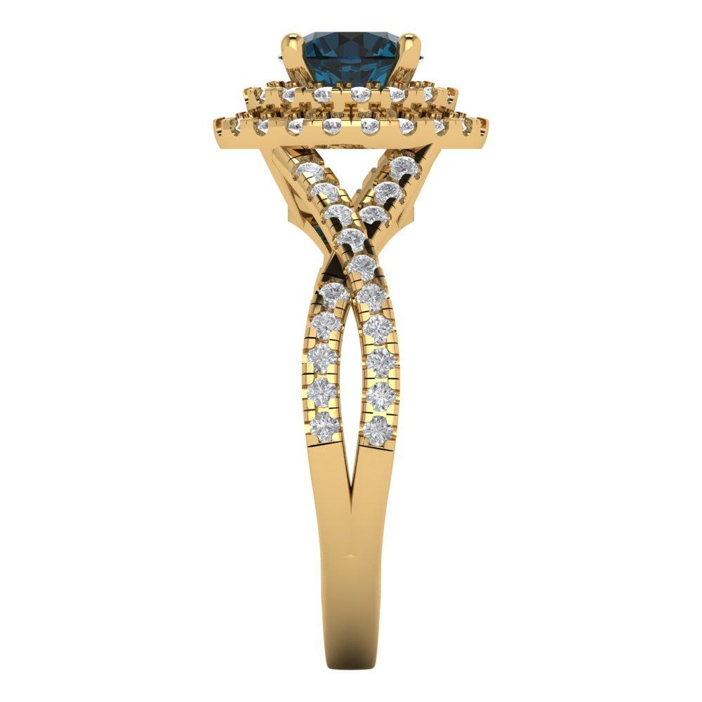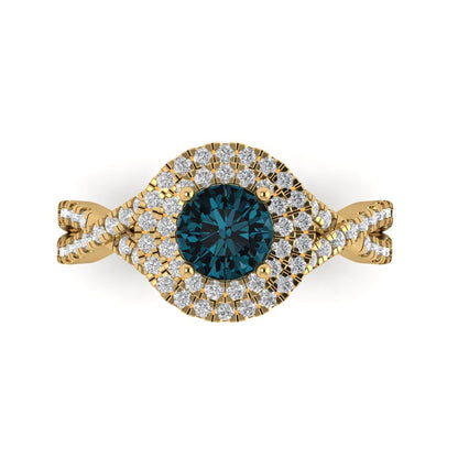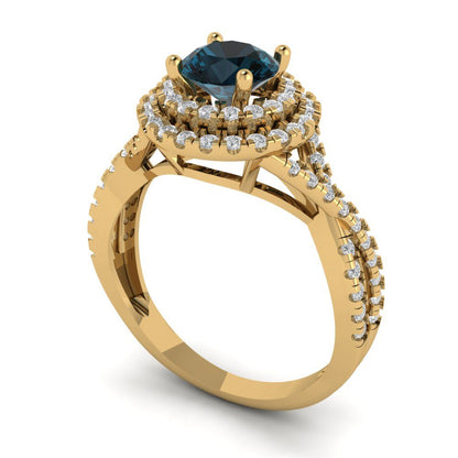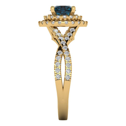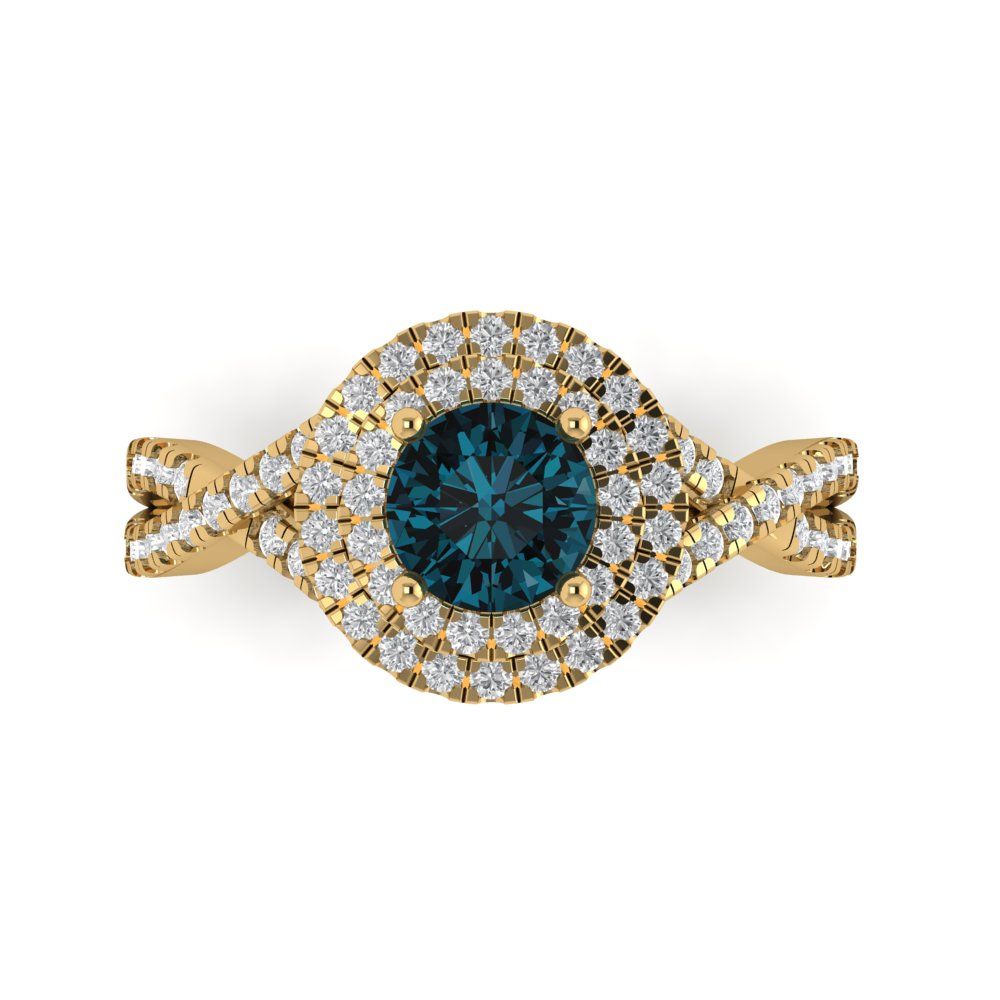 1.3125 cttw Natural London Blue Topaz Hidden Halo Engagement Ring - Solid Gold (Round Cut,6mm)