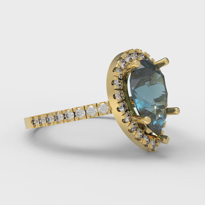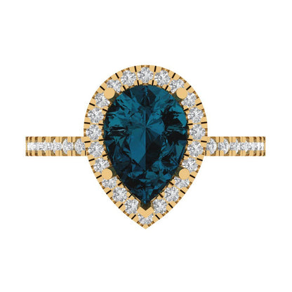 2.38 cttw Natural London Blue Topaz Hidden Halo Engagement Ring - Solid Gold (Pear Cut,10x7mm )