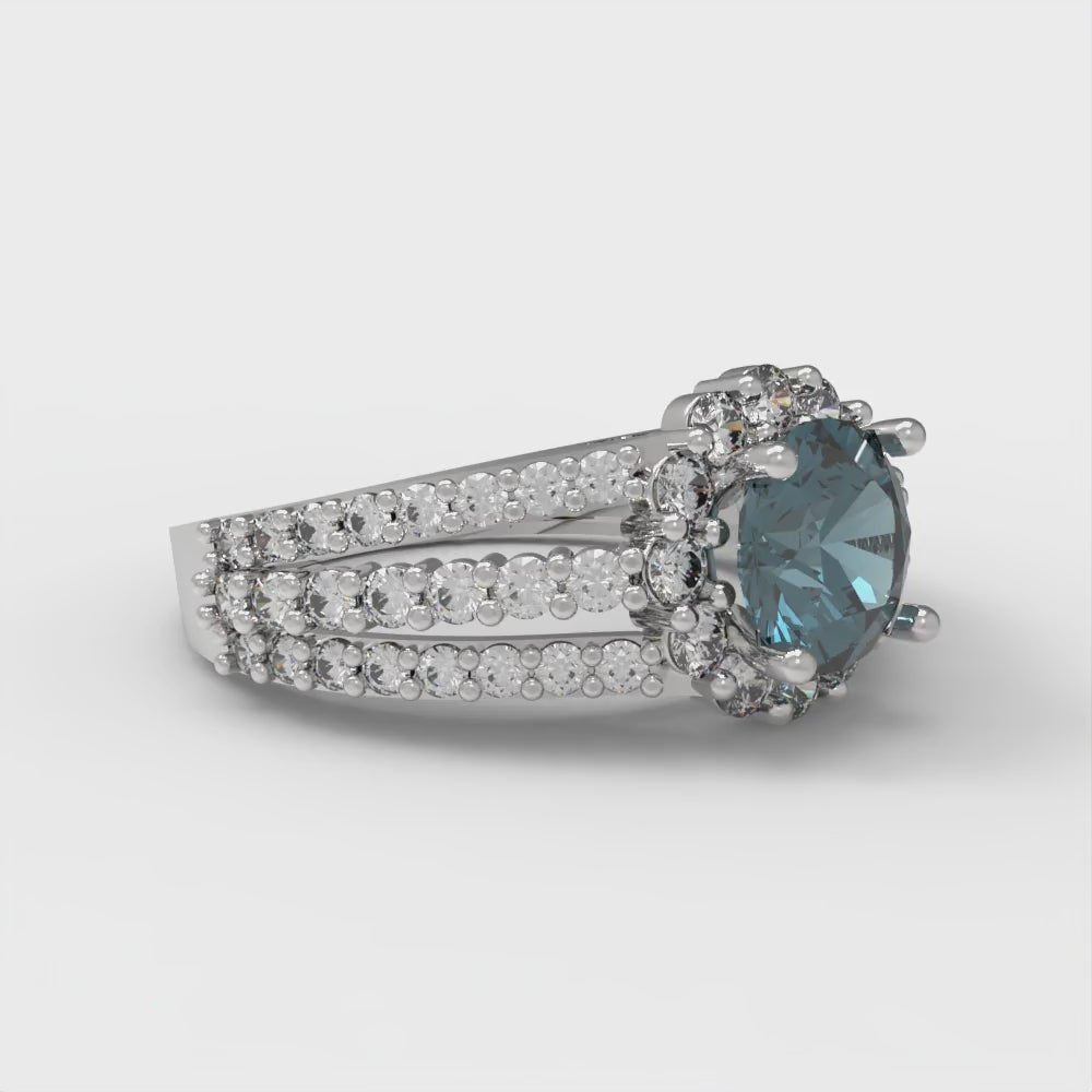 1.83 cttw Natural London Blue Topaz Hidden Halo Engagement Ring - Solid Gold (Round Cut,6.5mm)