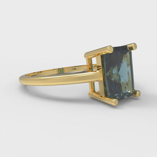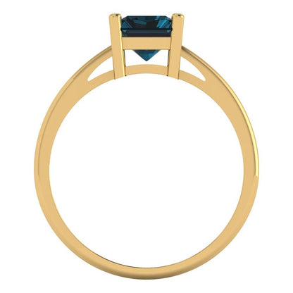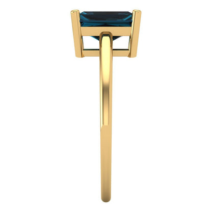 2 cttw Natural London Blue Topaz Solitaire Engagement Ring - Solid Gold (Emerald Cut,8x6mm)