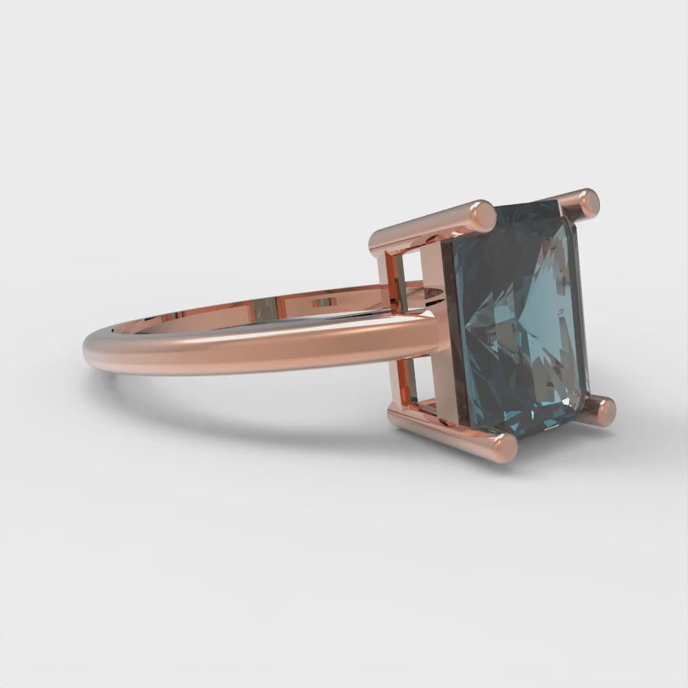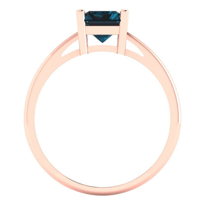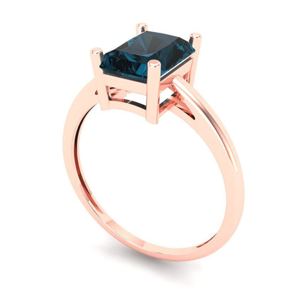2 cttw Natural London Blue Topaz Solitaire Engagement Ring - Solid Gold (Emerald Cut,8x6mm)
