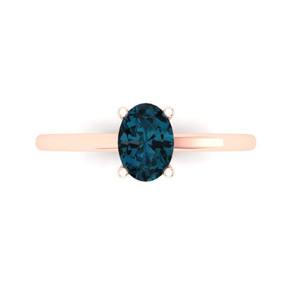 1 cttw Natural London Blue Topaz Solitaire Engagement Ring - Solid Gold (Oval Cut,7x5mm)
