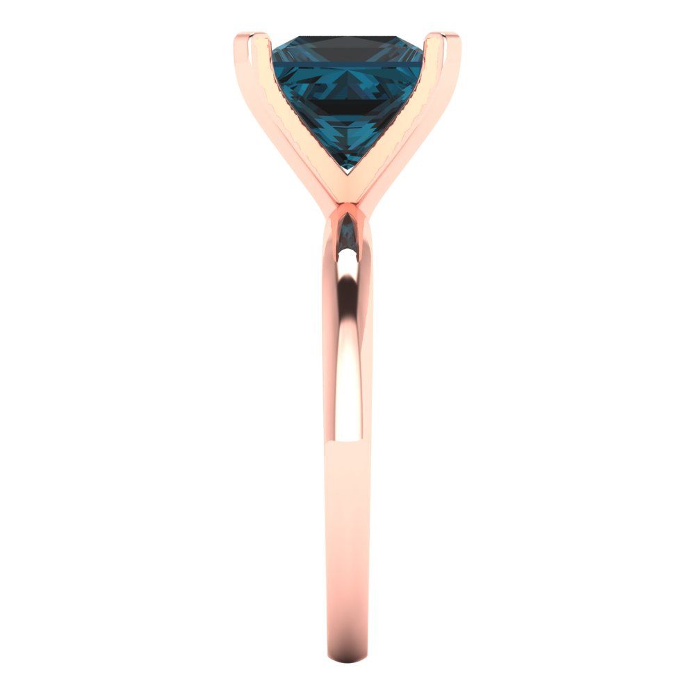 3 cttw Natural London Blue Topaz Solitaire Engagement Ring - Solid Gold (Princess Cut,8.0mm)