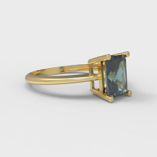 1 cttw Natural London Blue Topaz Solitaire Engagement Ring - Solid Gold (Radiant Cut,7x5mm)
