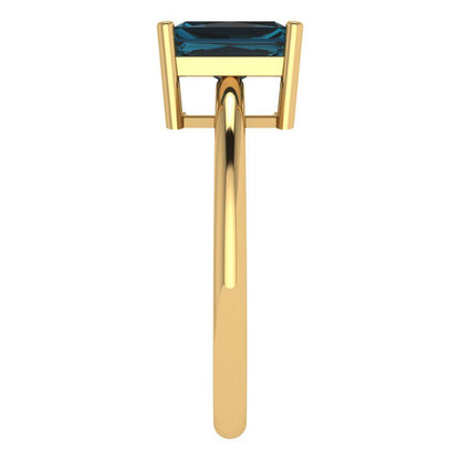 1.75 cttw Natural London Blue Topaz Solitaire Engagement Ring - Solid Gold (Radiant Cut,7.5x5.5mm)
