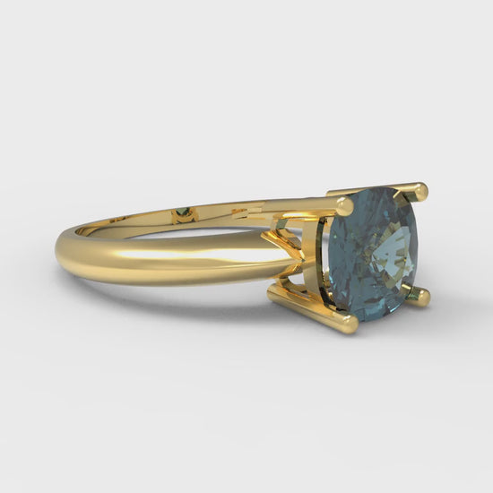 1.5 cttw Natural London Blue Topaz Solitaire Engagement Ring - Solid Gold (Cushion Cut,6.5mm)