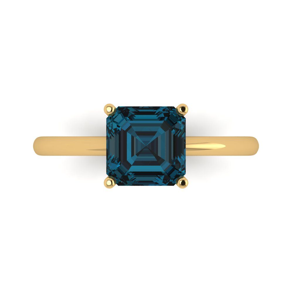 2 cttw Natural London Blue Topaz Solitaire Engagement Ring - Solid Gold (Asscher Cut,7.0mm)