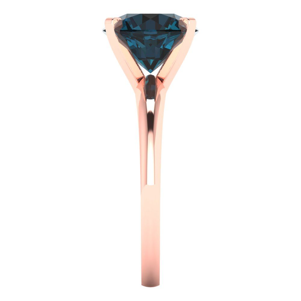 2.5 cttw Natural London Blue Topaz Solitaire Engagement Ring - Solid Rose Gold (VVS1, Round Cut,8.5mm)