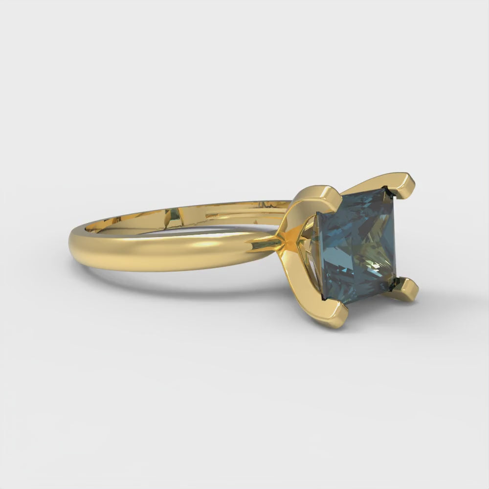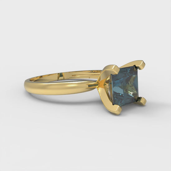 1.5 cttw Natural London Blue Topaz Solitaire Engagement Ring - Solid Gold (Princess Cut,6.5mm)