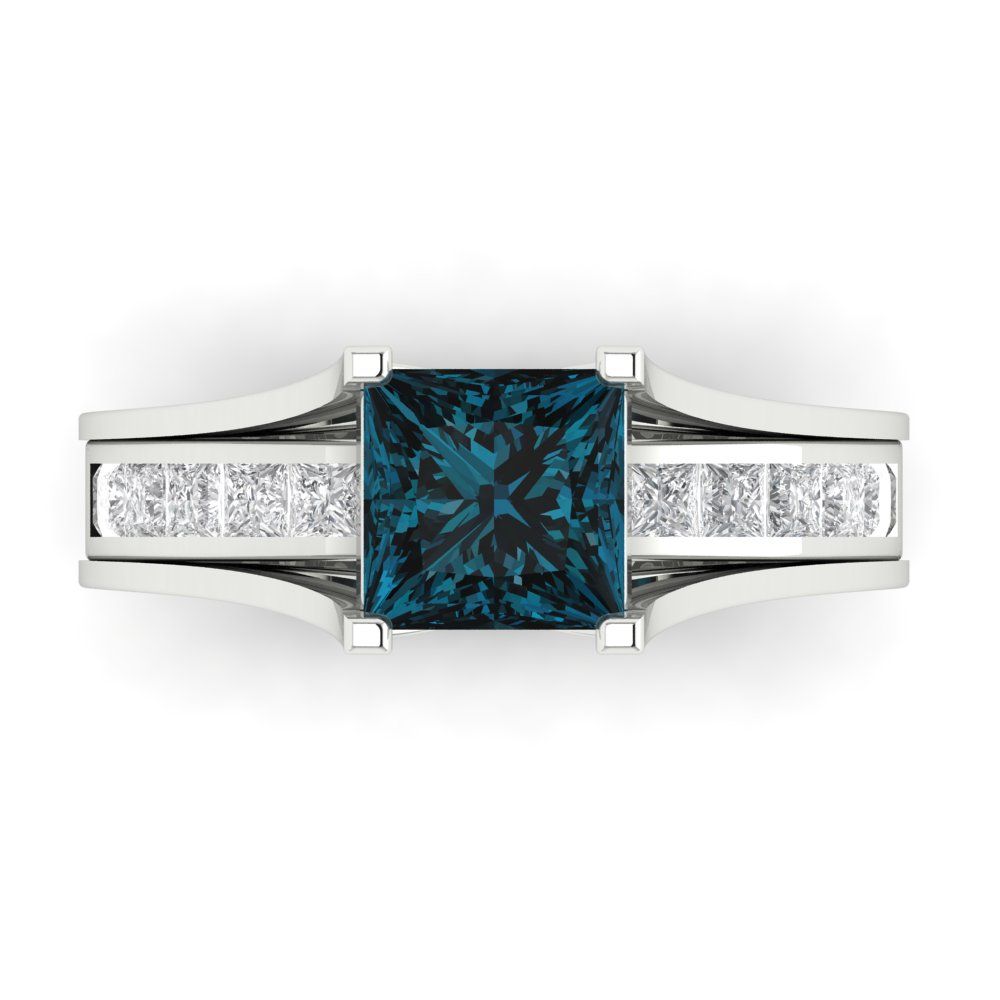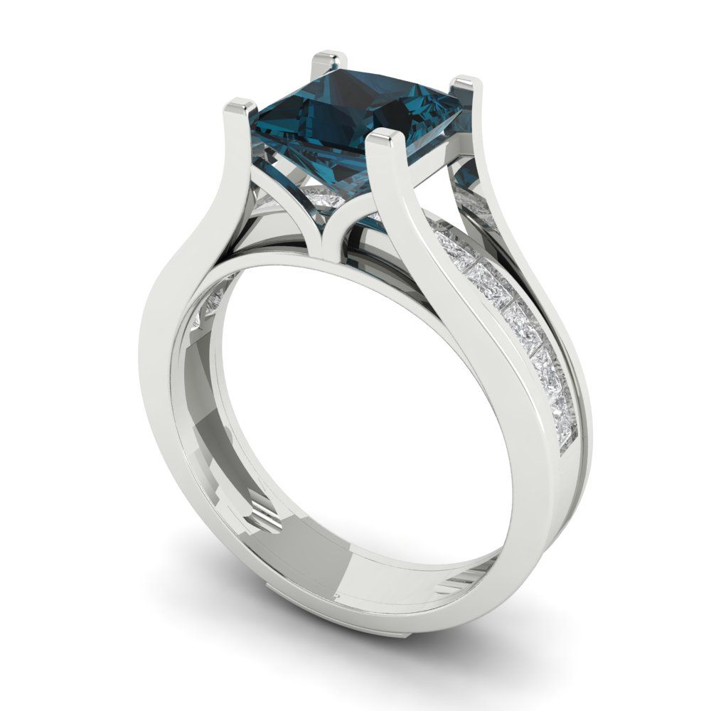 2.28 cttw Princess Cut Natural London Blue Topaz Bridal Set - Solid White Gold Engagement Ring & Wedding Band