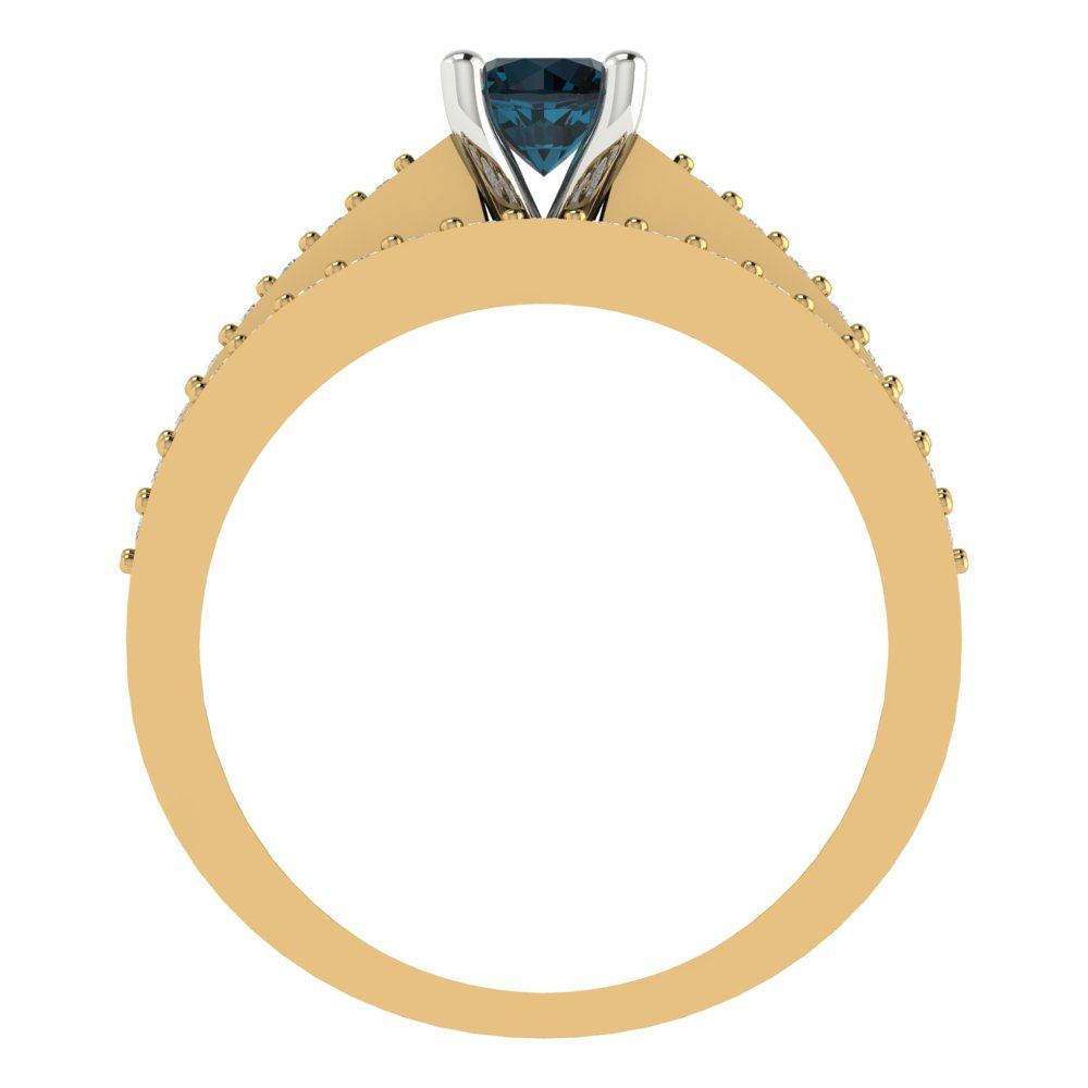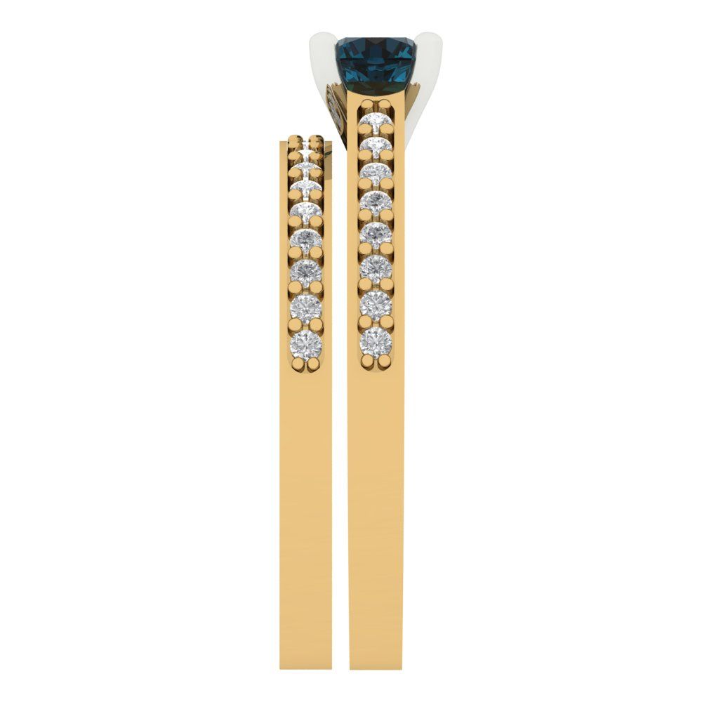 0.86 cttw Round Cut Natural London Blue Topaz Bridal Set - Solid Yellow/White Gold Engagement Ring & Wedding Band
