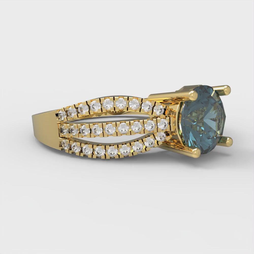 1.27 cttw Natural London Blue Topaz Solitaire with Zirconia Simulated Diamond Accents Engagement Ring - Solid Gold (Round Cut,6.5mm)