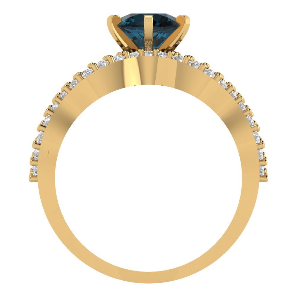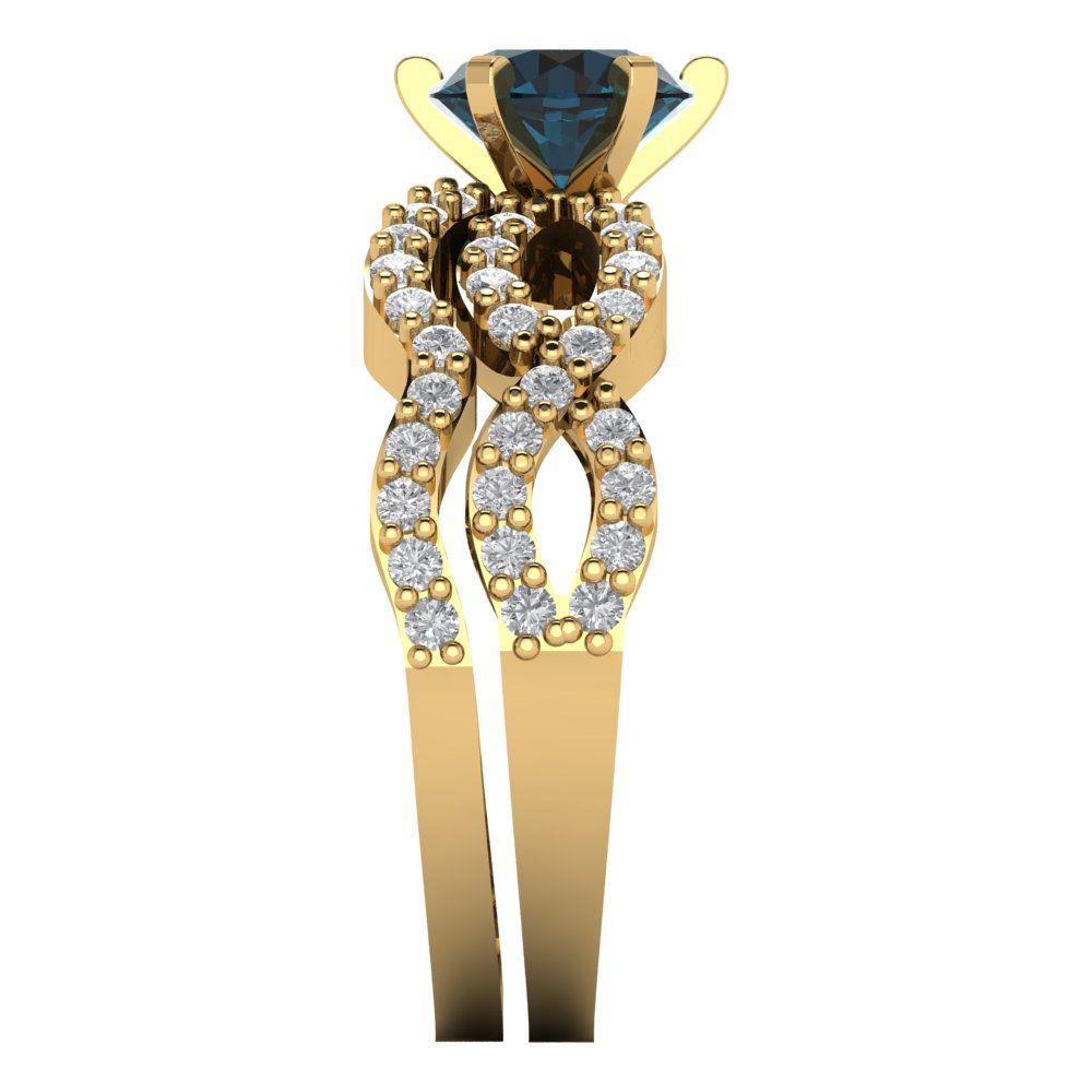 1.57 cttw Round Cut Natural London Blue Topaz Bridal Set - Solid Yellow Gold Engagement Ring & Wedding Band