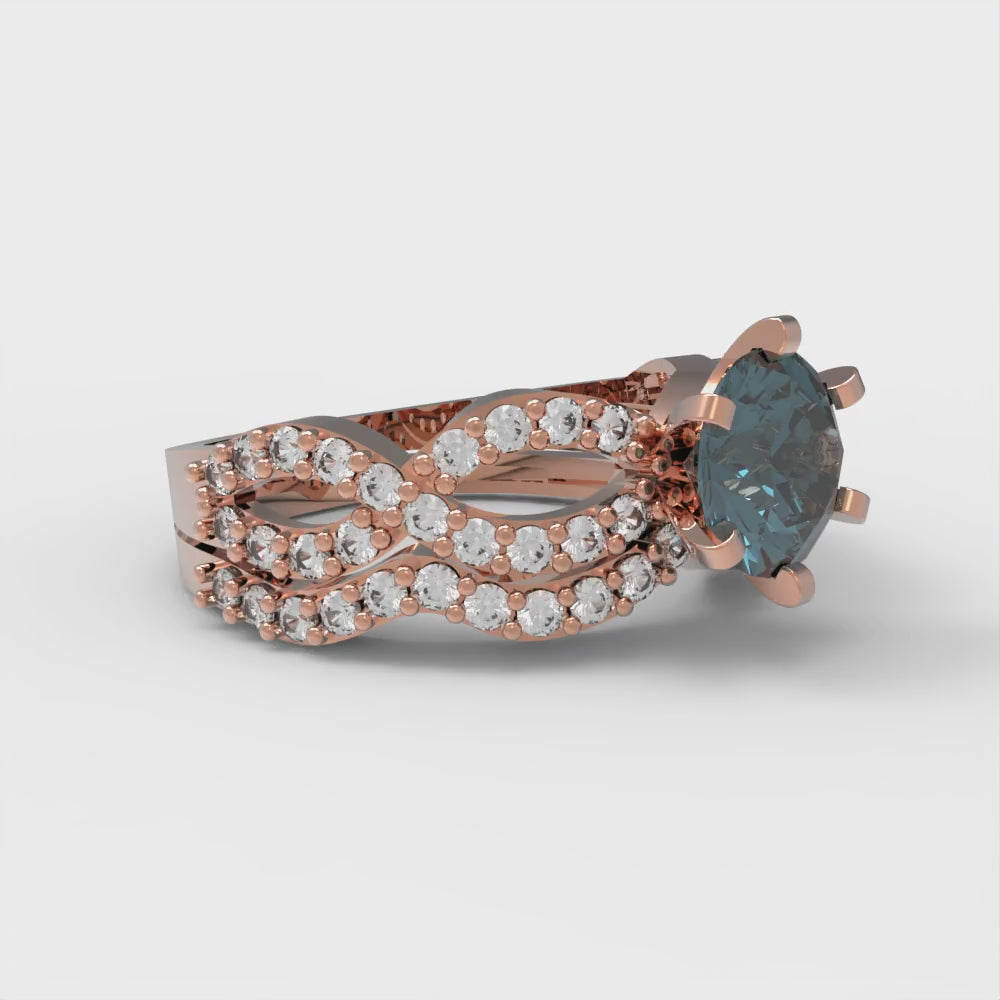 1.57 cttw Round Cut Natural London Blue Topaz Bridal Set - Solid Rose Gold Engagement Ring & Wedding Band