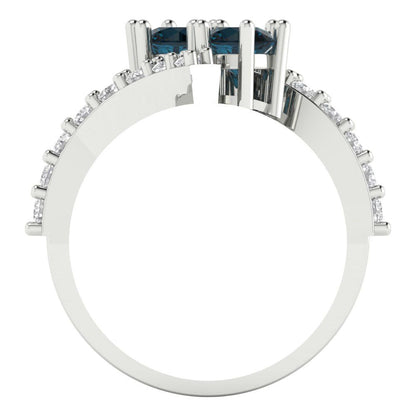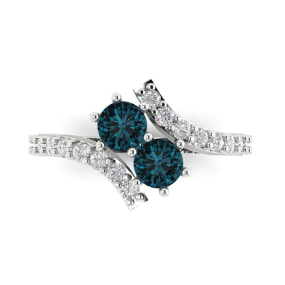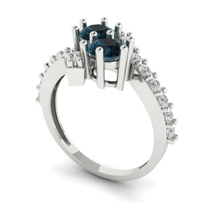 1.48 cttw Natural London Blue Topaz Solitaire with Zirconia Simulated Diamond Accents Engagement Ring - Solid Gold (Round Cut,5mm)
