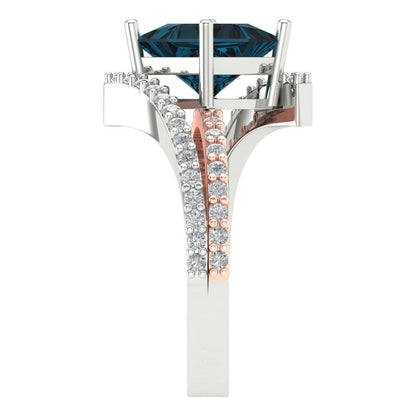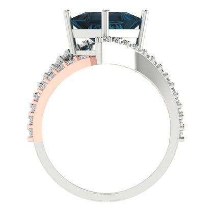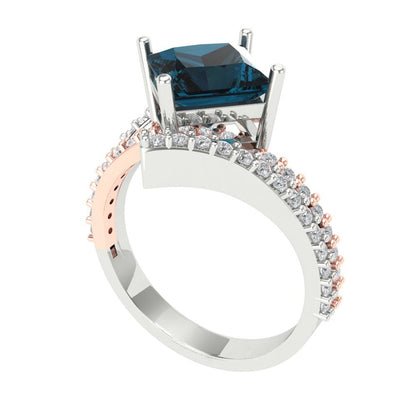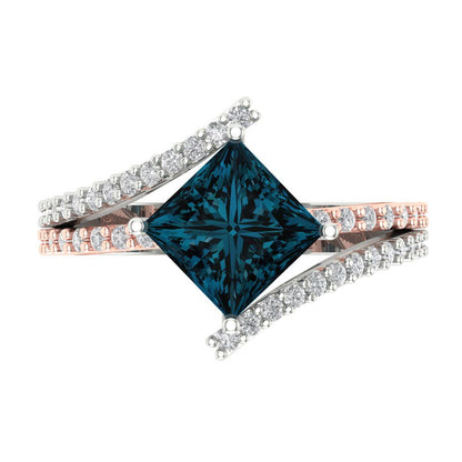 2.3075 cttw Natural London Blue Topaz Solitaire with Zirconia Simulated Diamond Accents Engagement Ring - Solid Gold (Princess Cut,7.0mm)