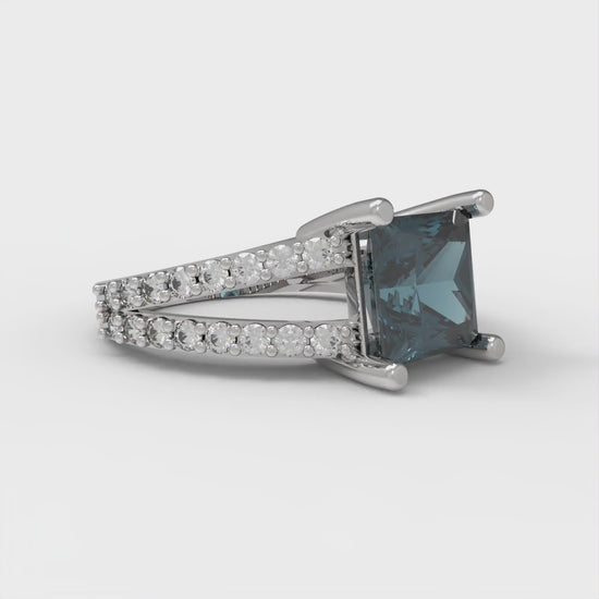 2.48 cttw Natural London Blue Topaz Solitaire with Zirconia Simulated Diamond Accents Engagement Ring - Solid Gold (Princess Cut,7.0mm)