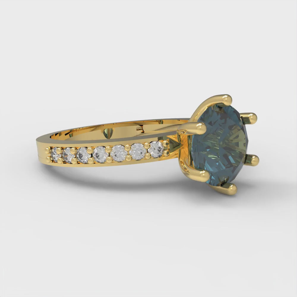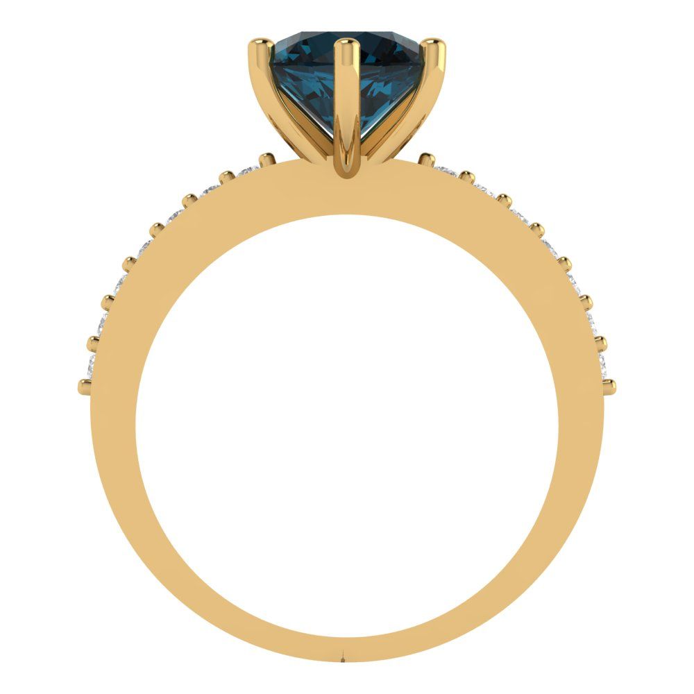 1.71 cttw Natural London Blue Topaz Solitaire with Zirconia Simulated Diamond Accents Engagement Ring - Solid Gold (Round Cut,7.5mm)