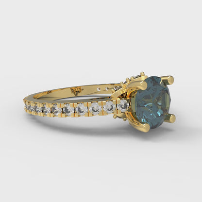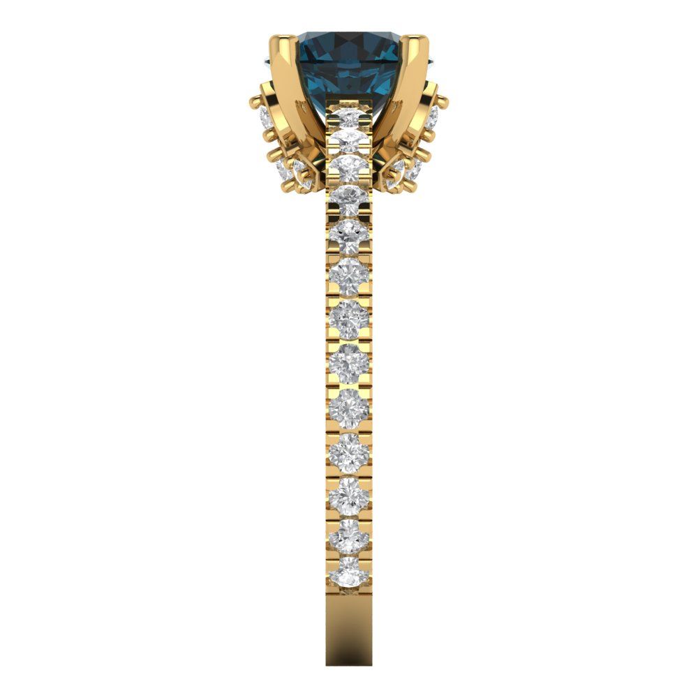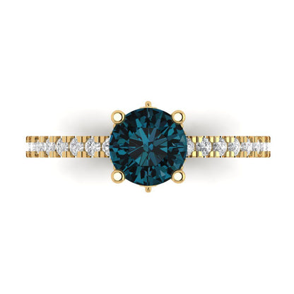 1.465 cttw Natural London Blue Topaz Solitaire with Zirconia Simulated Diamond Accents Engagement Ring - Solid Gold (Round Cut,6.5mm)