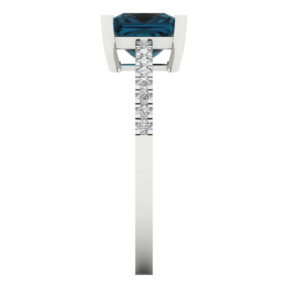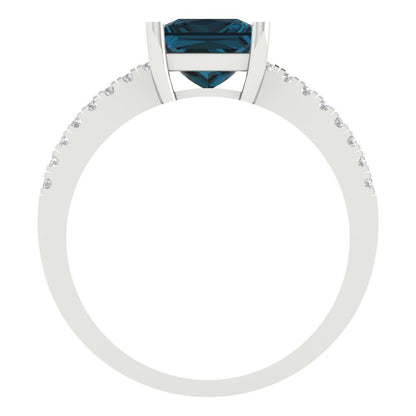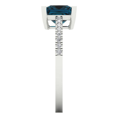 1.62 cttw Natural London Blue Topaz Solitaire with Zirconia Simulated Diamond Accents Engagement Ring - Solid Gold (Princess Cut,6.5mm)
