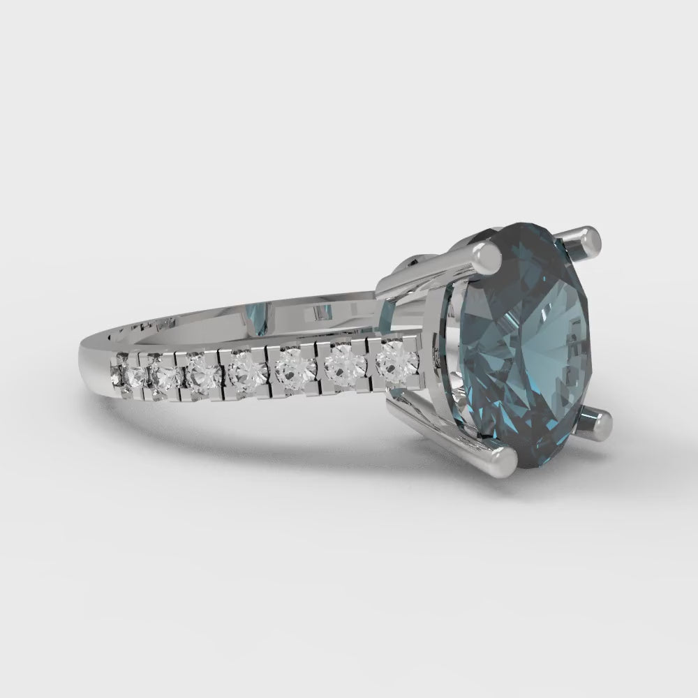 2.21 cttw Natural London Blue Topaz Solitaire with Zirconia Simulated Diamond Accents Engagement Ring - Solid Gold (Oval Cut,9X7mm)