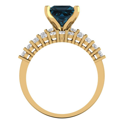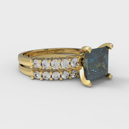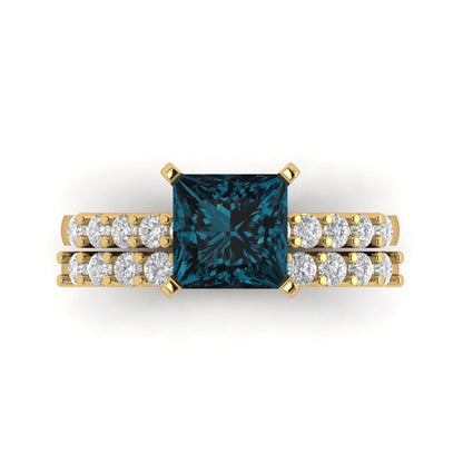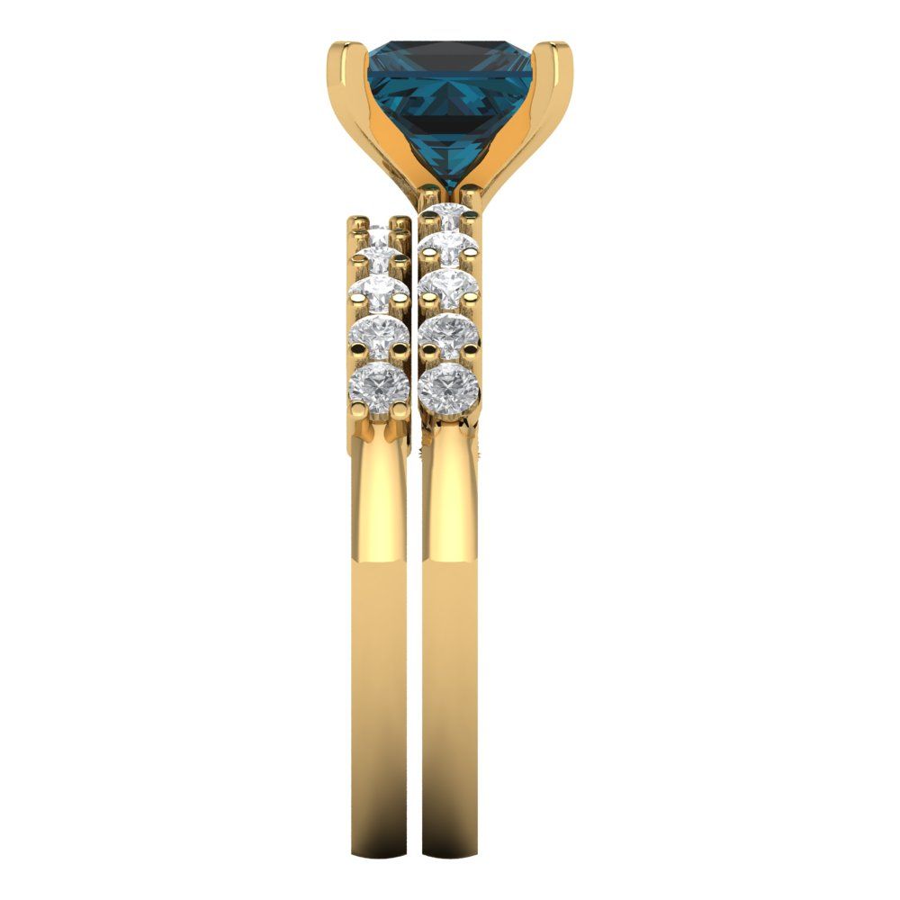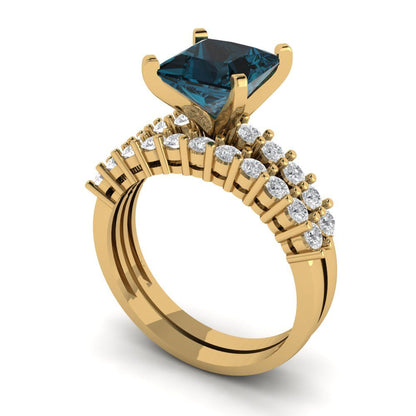 2.63 cttw Princess Cut Natural London Blue Topaz Bridal Set - Solid Yellow Gold Engagement Ring & Wedding Band