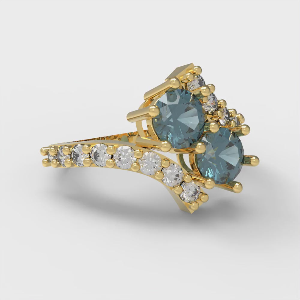 1.48 cttw Natural London Blue Topaz Solitaire with Zirconia Simulated Diamond Accents Engagement Ring - Solid Gold (Round Cut,5mm)