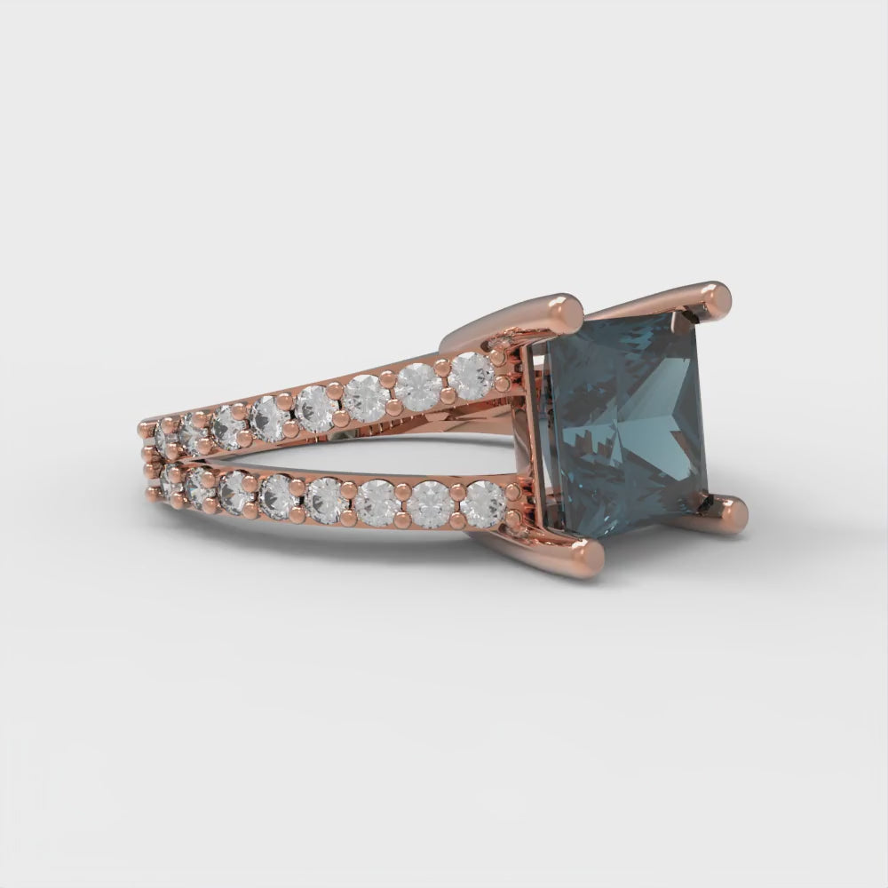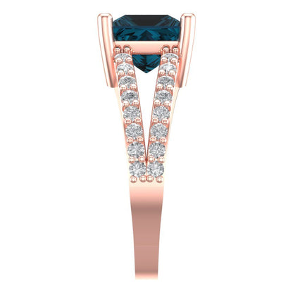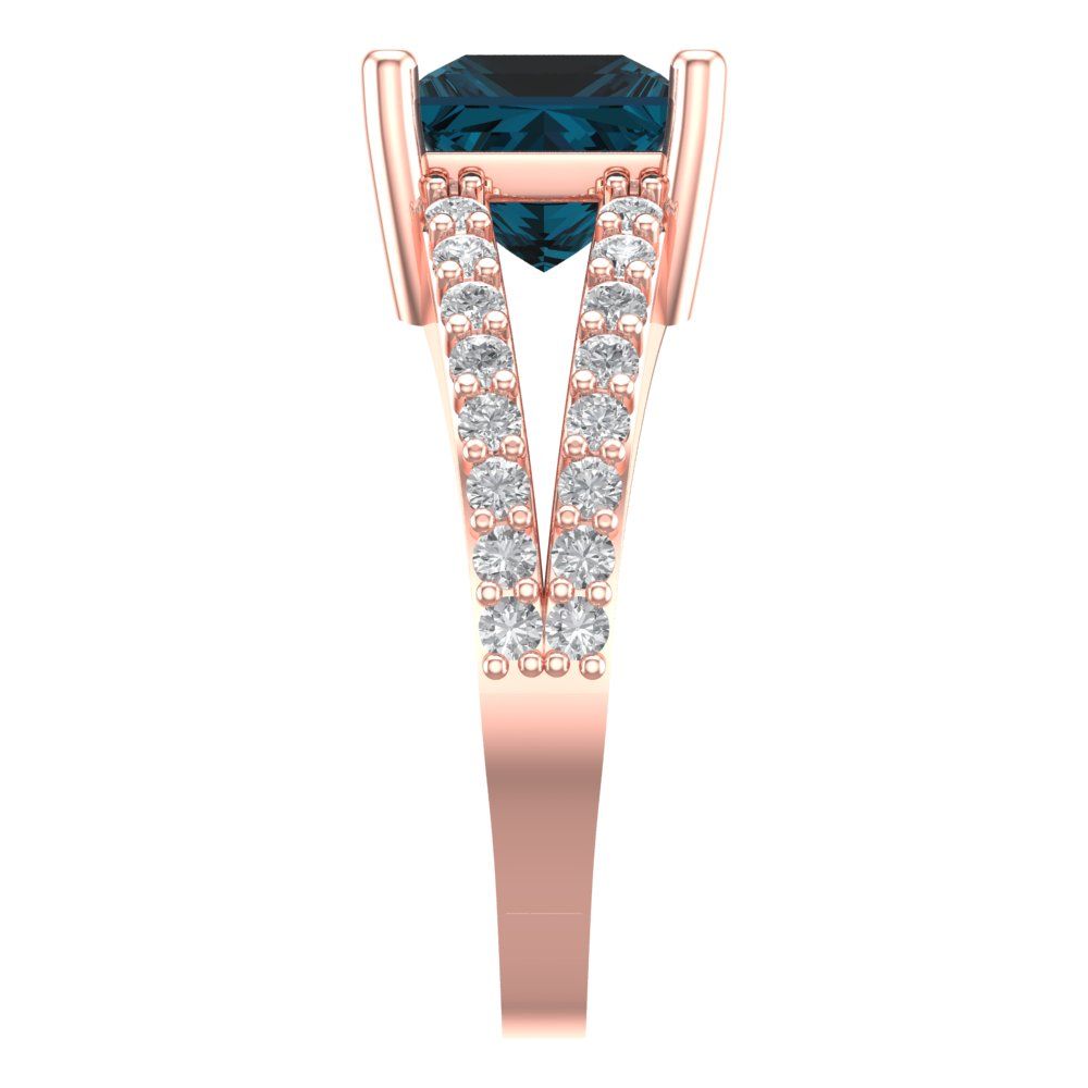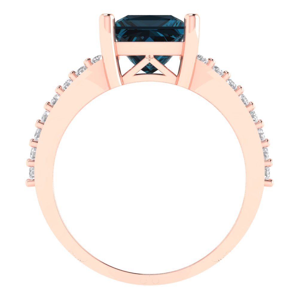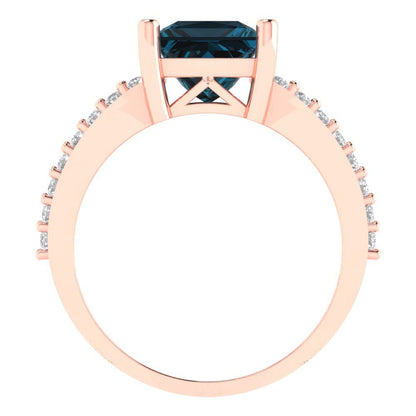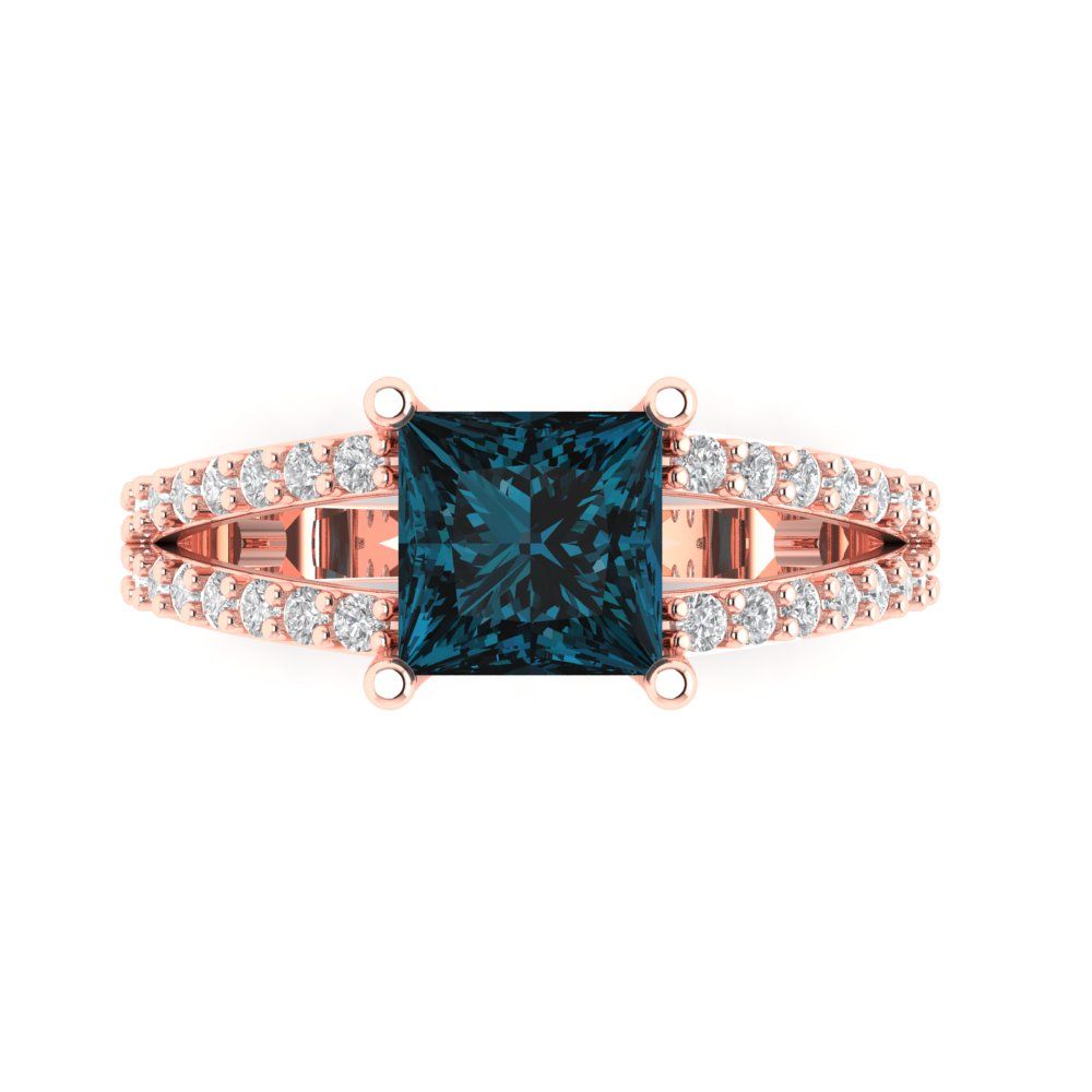 2.48 cttw Natural London Blue Topaz Solitaire with Zirconia Simulated Diamond Accents Engagement Ring - Solid Gold (Princess Cut,7.0mm)