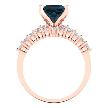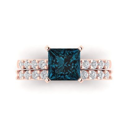 2.63 cttw Princess Cut Natural London Blue Topaz Bridal Set - Solid Rose Gold Engagement Ring & Wedding Band