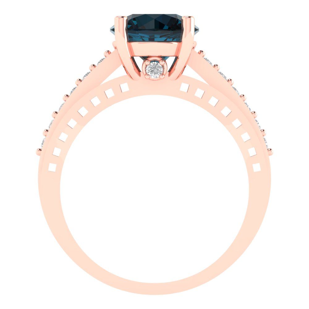 2.21 cttw Natural London Blue Topaz Solitaire with Zirconia Simulated Diamond Accents Engagement Ring - Solid Gold (Round Cut,8.0mm)