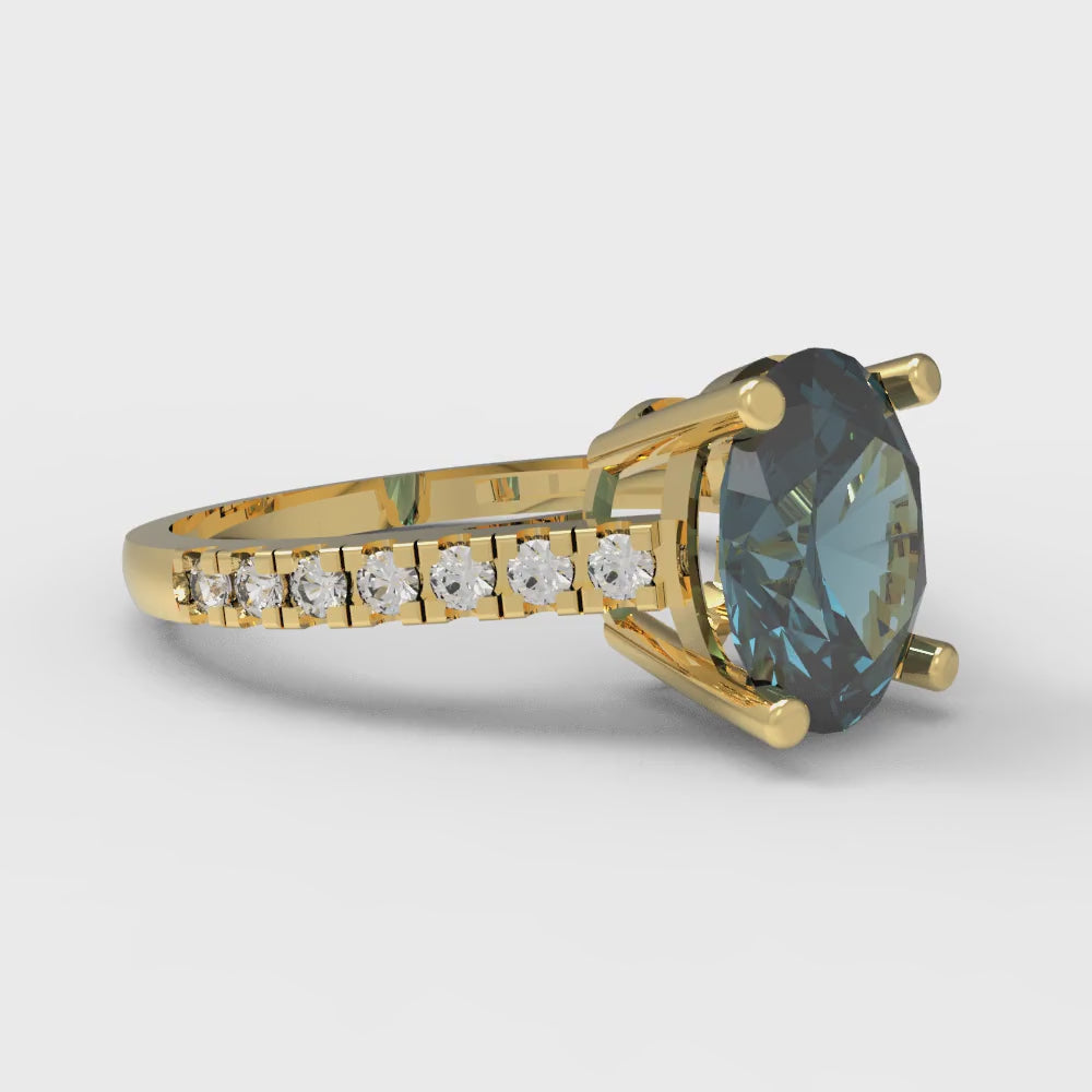 2.21 cttw Natural London Blue Topaz Solitaire with Zirconia Simulated Diamond Accents Engagement Ring - Solid Gold (Oval Cut,9X7mm)
