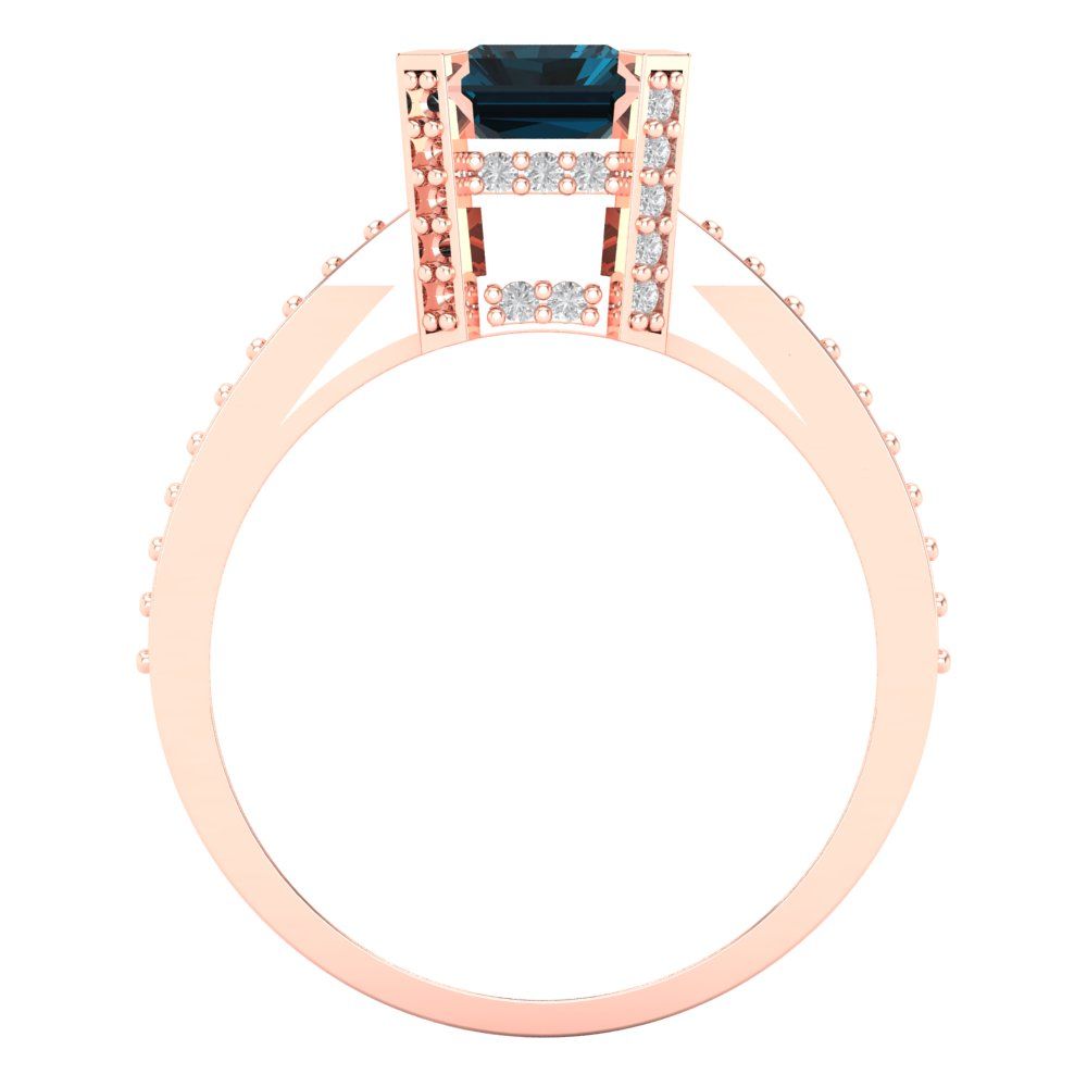 2.45 cttw Natural London Blue Topaz Solitaire with Zirconia Simulated Diamond Accents Engagement Ring - Solid Gold (Emerald Cut,8x6mm)