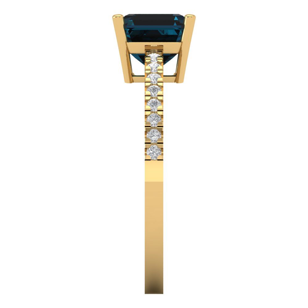 2.7 cttw Natural London Blue Topaz Solitaire with Zirconia Simulated Diamond Accents Engagement Ring - Solid Gold (Cushion Cut,6.5mm)