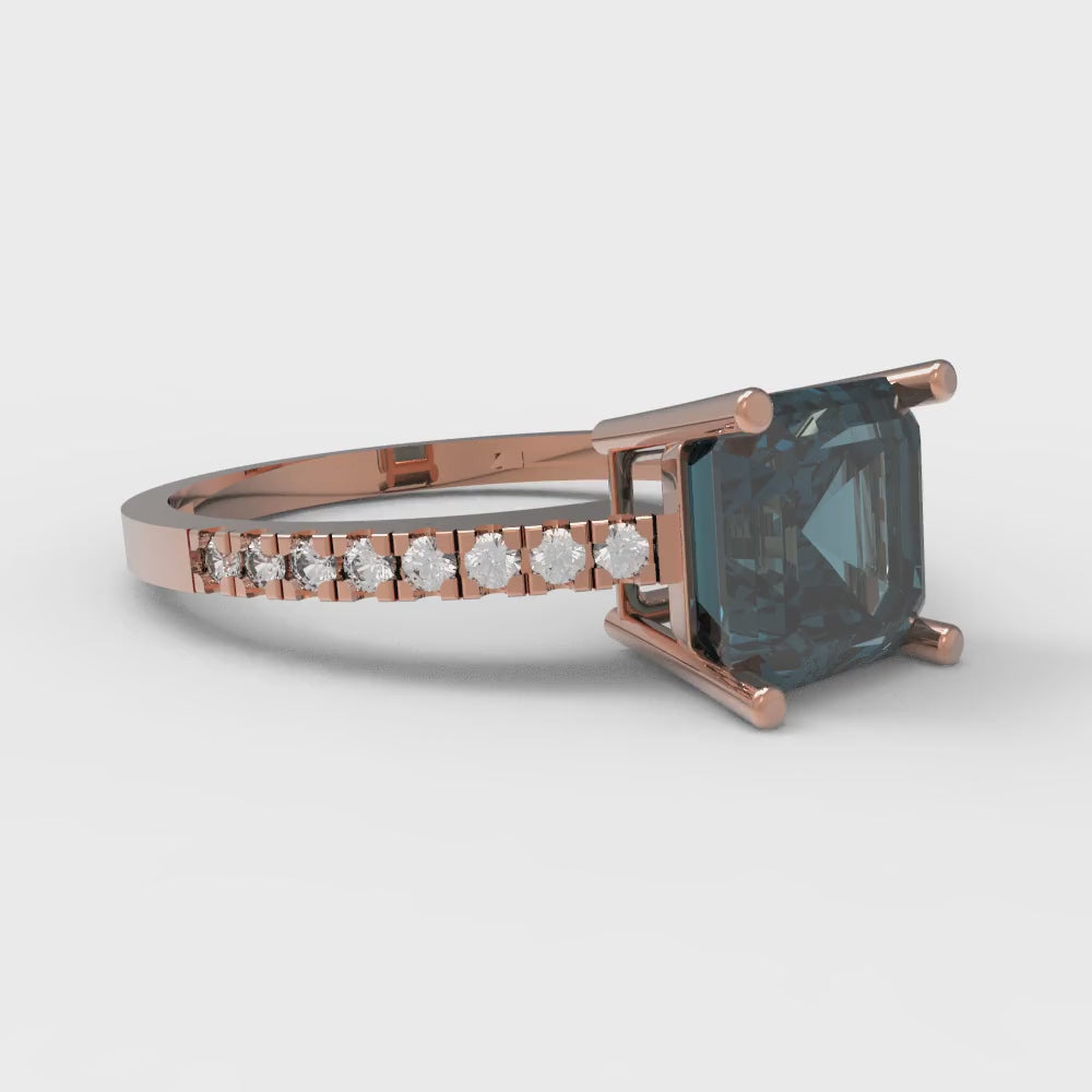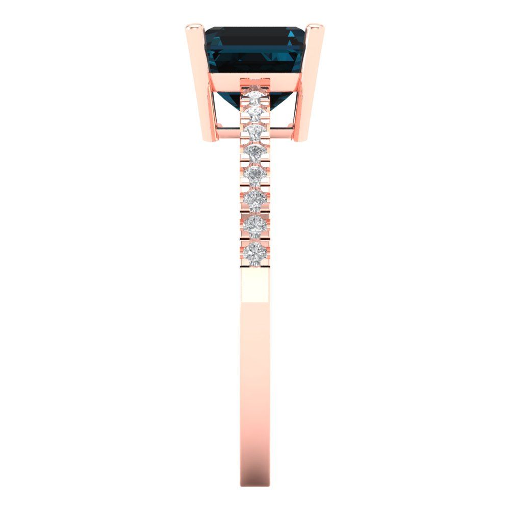2.7 cttw Natural London Blue Topaz Solitaire with Zirconia Simulated Diamond Accents Engagement Ring - Solid Gold (Asscher Cut,6.5mm)