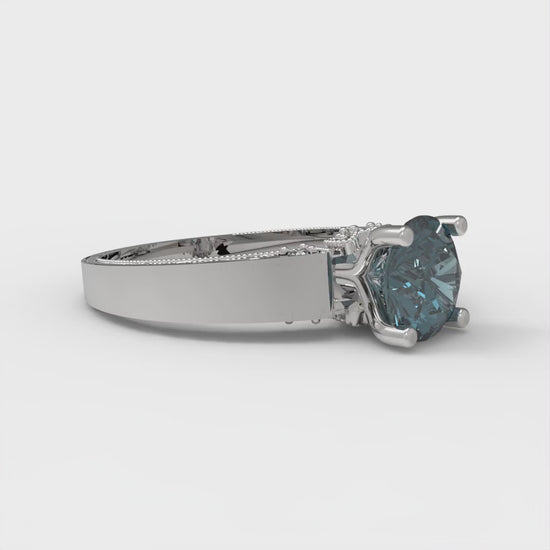 1.06 cttw Natural London Blue Topaz Solitaire with Zirconia Simulated Diamond Accents Engagement Ring - Solid Gold (Round Cut,6.5mm)
