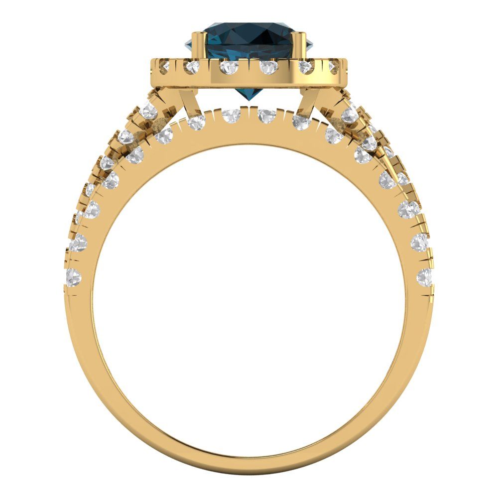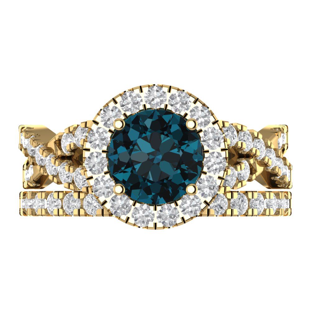 1.795 cttw Round Cut Natural London Blue Topaz Bridal Set - Solid Yellow Gold Engagement Ring & Wedding Band