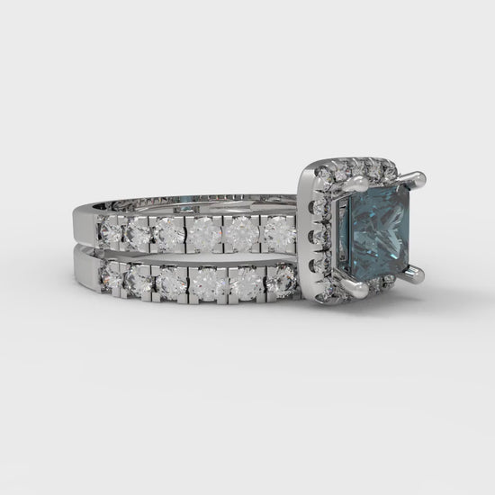 1.56 cttw Princess Cut Natural London Blue Topaz Bridal Set - Solid White Gold Engagement Ring & Wedding Band