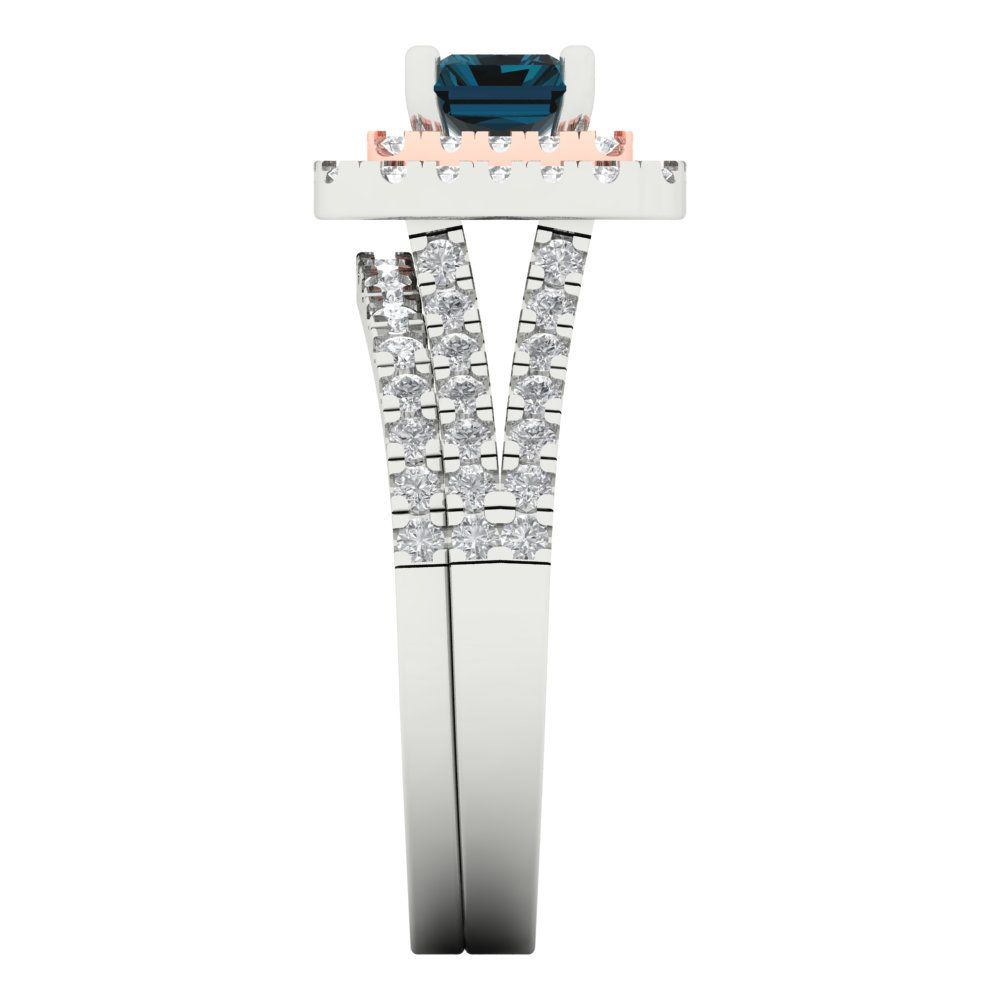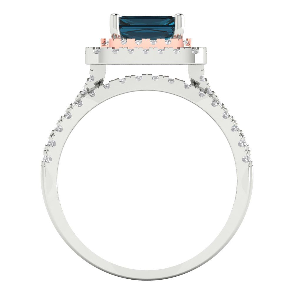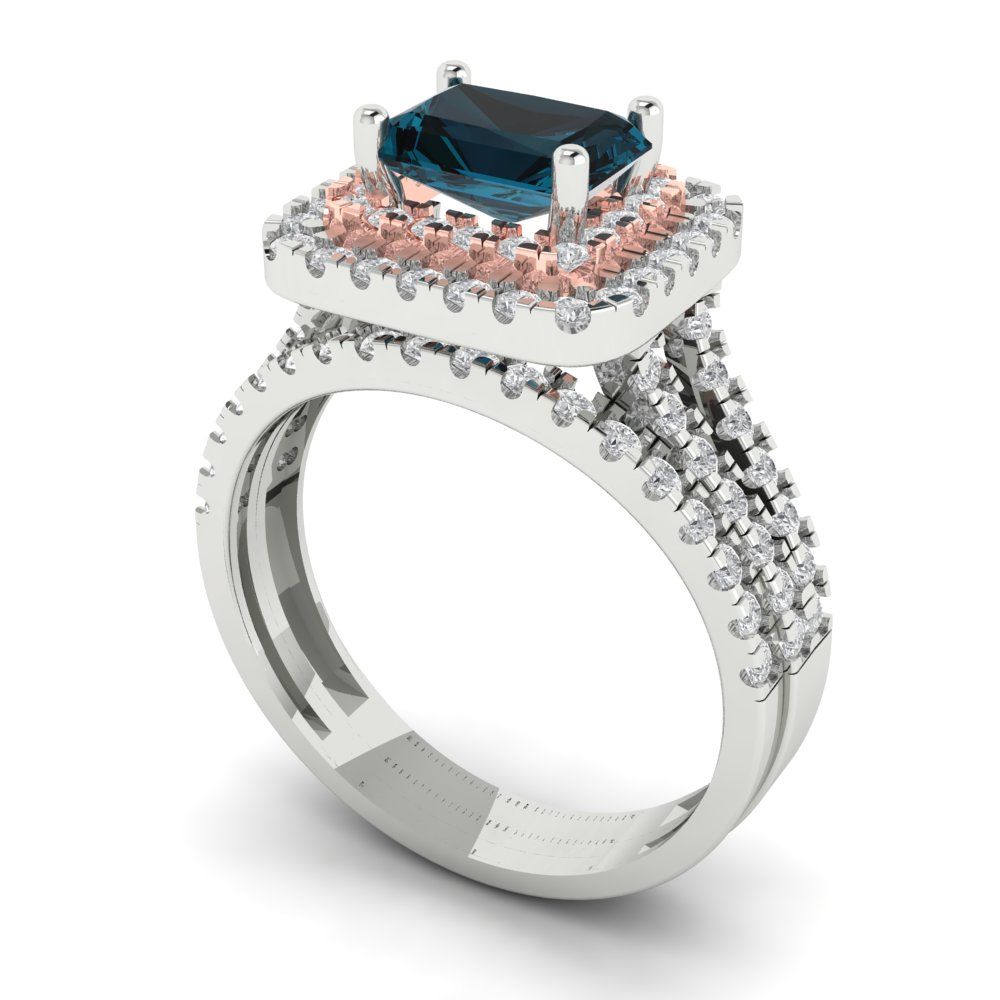 3.05 cttw Emerald Cut Natural London Blue Topaz Bridal Set - Solid White/Rose Gold Engagement Ring & Wedding Band