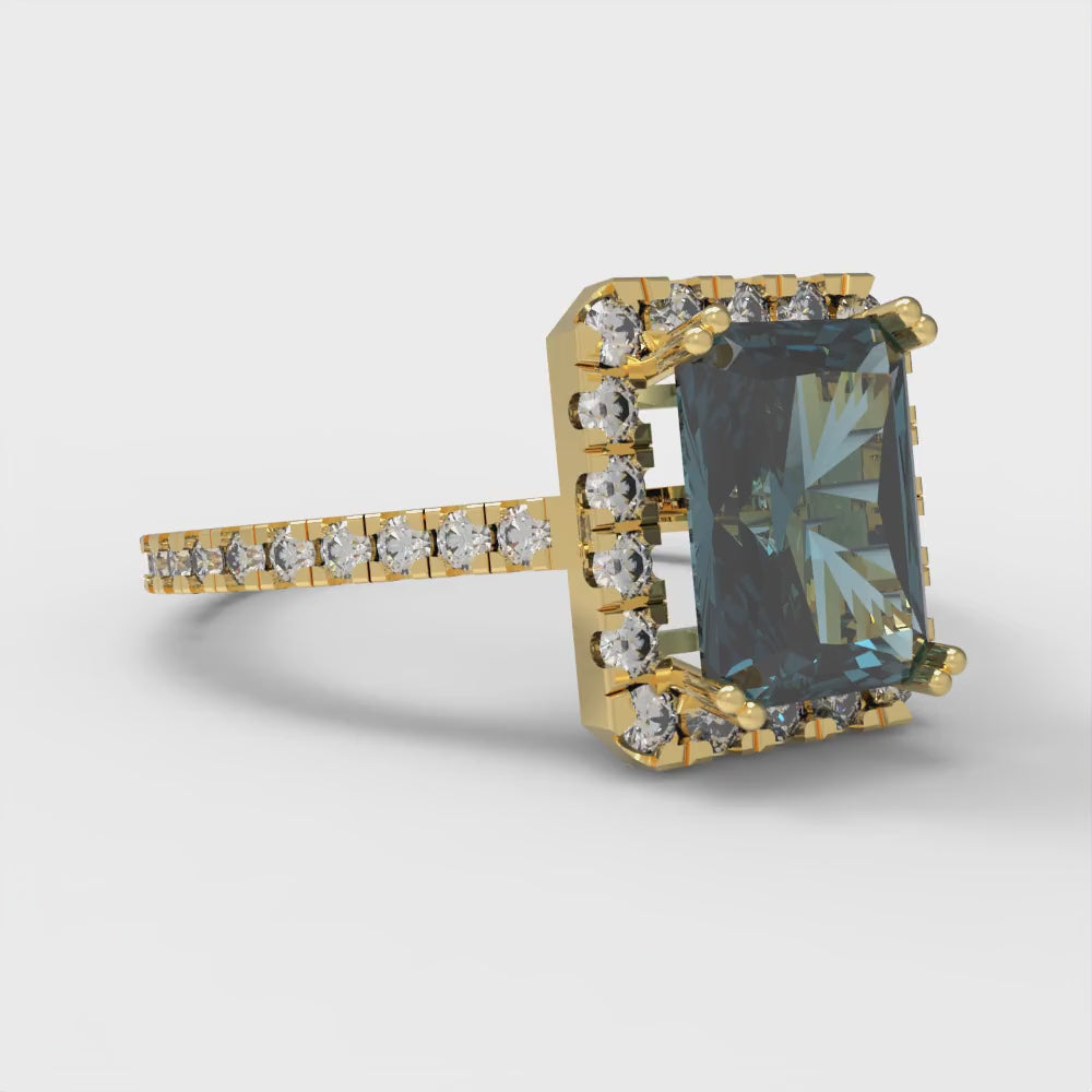 1.86 cttw Natural London Blue Topaz Solitaire with Zirconia Simulated Diamond Accents Engagement Ring - Solid Gold (Emerald Cut,7.5x5.5mm)