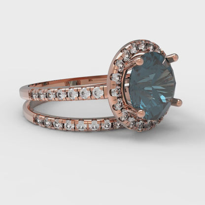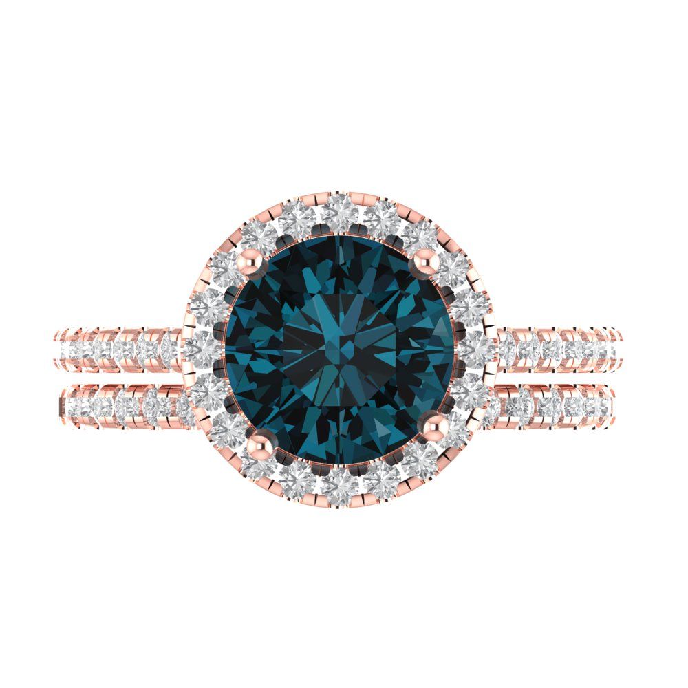 2.52 cttw Round Cut Natural London Blue Topaz Bridal Set - Solid Rose Gold Engagement Ring & Wedding Band