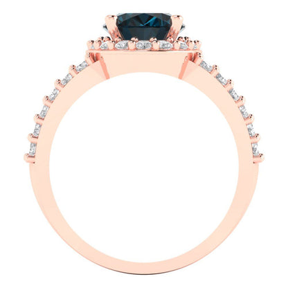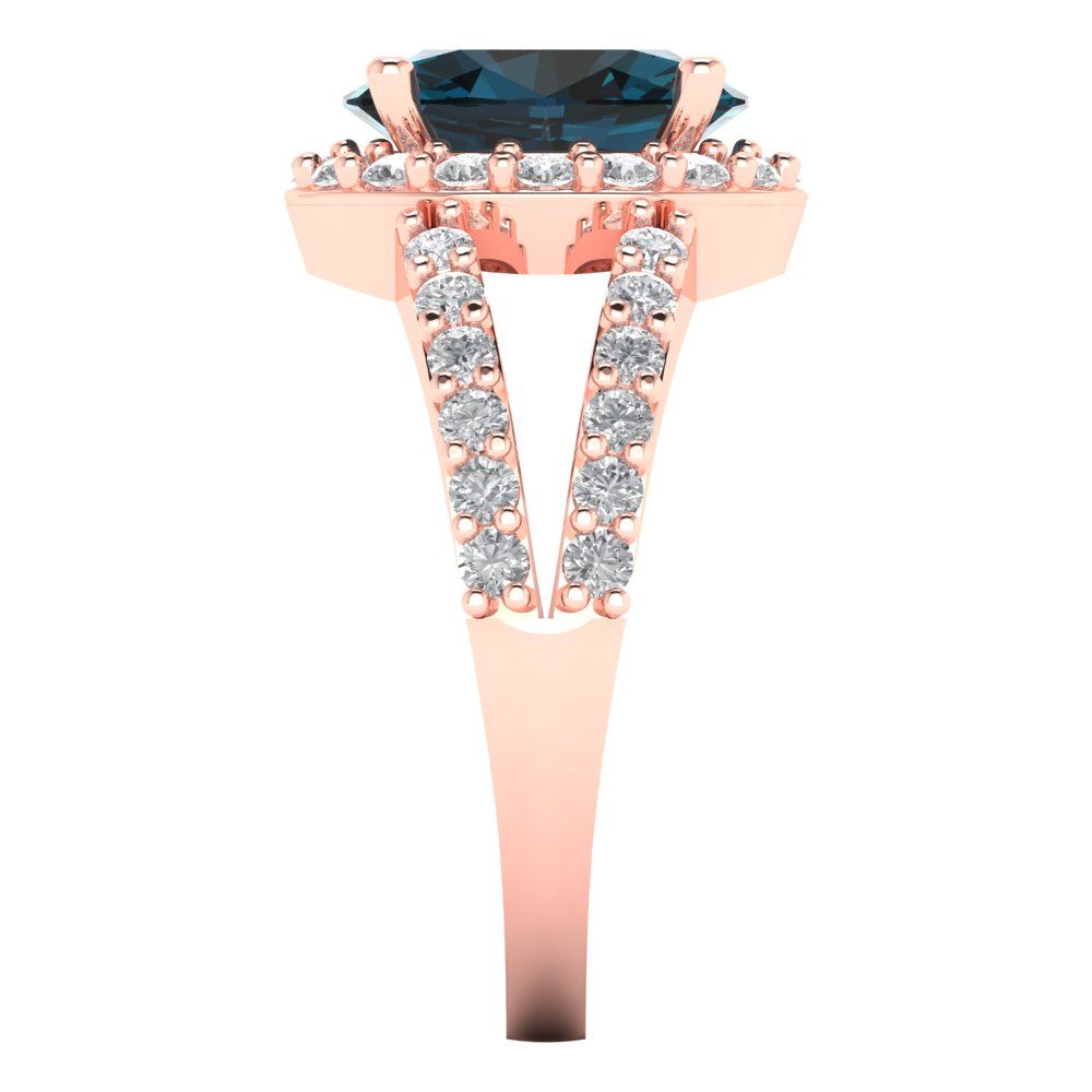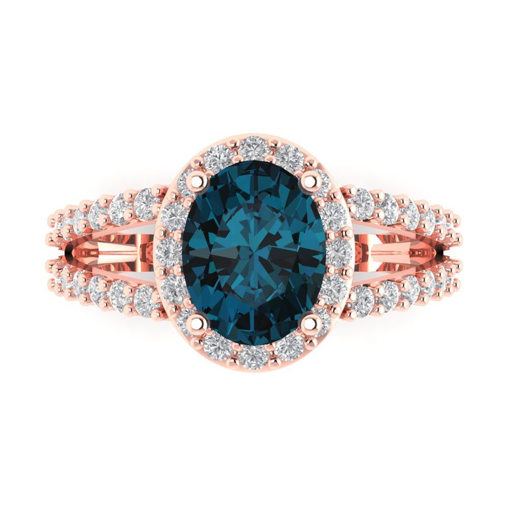 2.6 cttw Natural London Blue Topaz Solitaire with Zirconia Simulated Diamond Accents Engagement Ring - Solid Gold (Oval Cut,9x7mm)