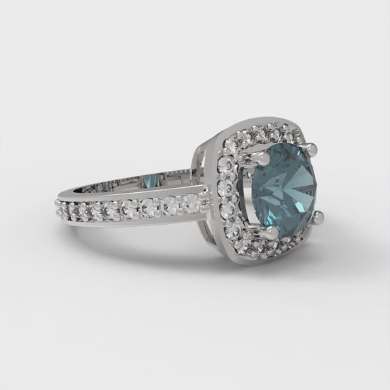 1.335 cttw Natural London Blue Topaz Solitaire with Zirconia Simulated Diamond Accents Engagement Ring - Solid Gold (Round Cut,6.5mm)